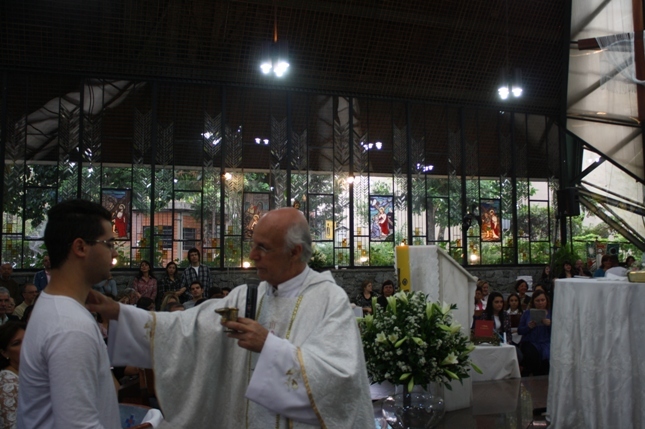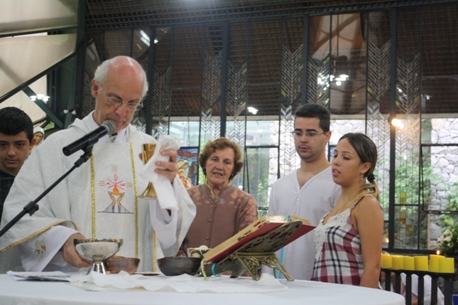 Durante a celebração, o batizado, a crisma e a primeira eucaristia do Diego, que em breve receberá também os sacramentos do casamento. Homenageando todas as mães, a mais jovem e a mãe mais experiente, essa última, uma tataravó, nossa querida Professora Alzira, receberam presentes e o carinho especial da Comunidade.