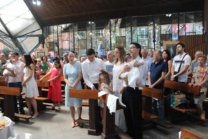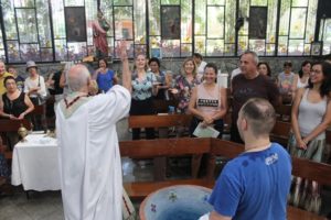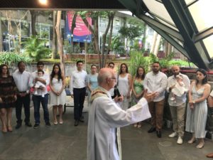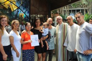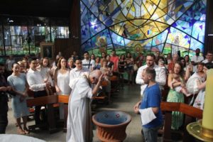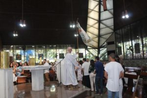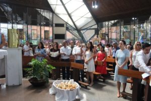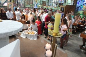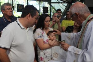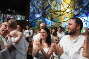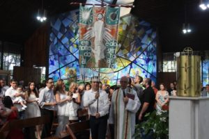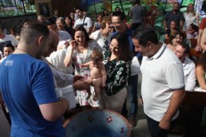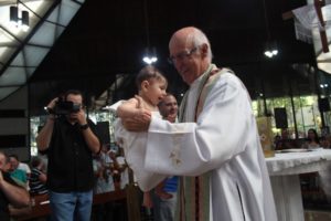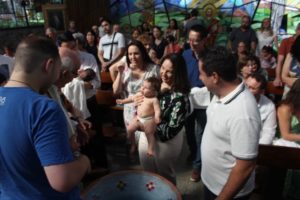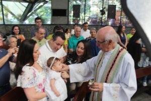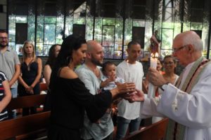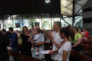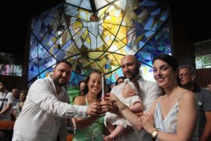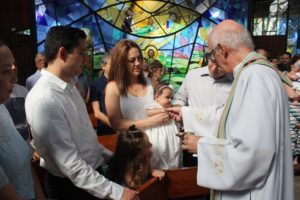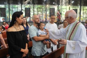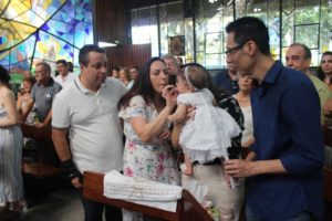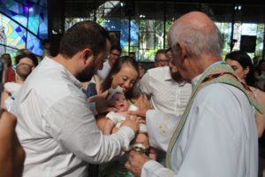 Neste domingo, 20 de janeiro de 2019, na capela universitária São Judas Tadeu, mais cinco crianças foram batizadas na Comunidade São Miguel Arcanjo. Receberam o sacramento do batismo a Clara Formaziero Rissato, Ian Vicente Feitosa, Julia Scapin Sato, Lara Cardoso Santos e o Luccas Borgesi Rodrigues.