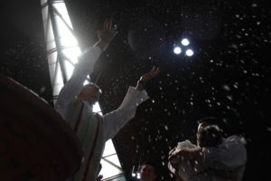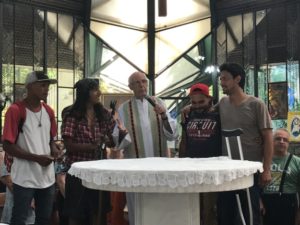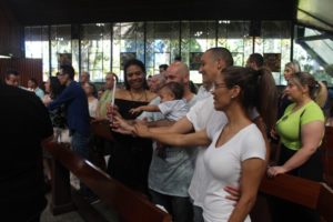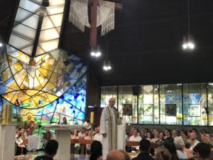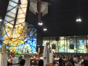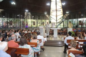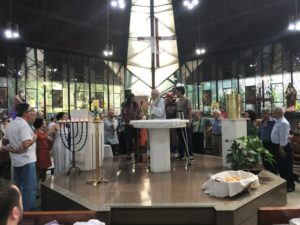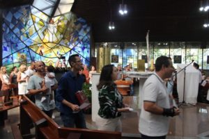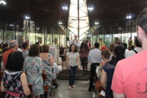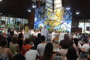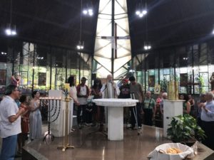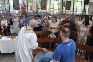 No final da missa, a participação das pessoas que são imigrantes ou descendentes.