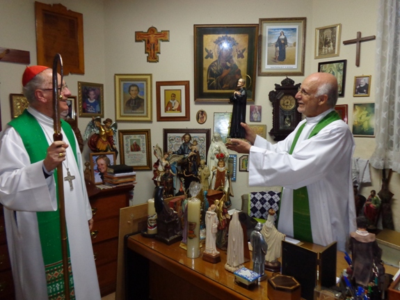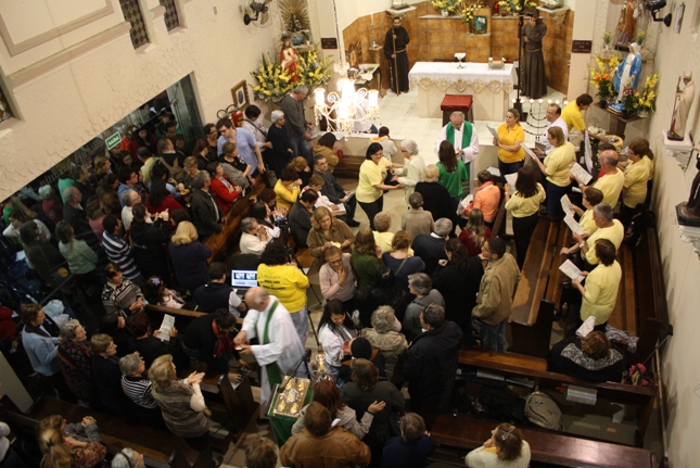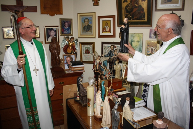 Receber uma visita tão ilustre como D. Cláudio é muito bom e ao mesmo tempo um momento de ansiedade. Mas D. Cláudio foi muito cordial e amável e aceitou levar as cartinhas da comunidade para o Papa. A comunidade agradece sua presença e deseja-lhe boa viagem.