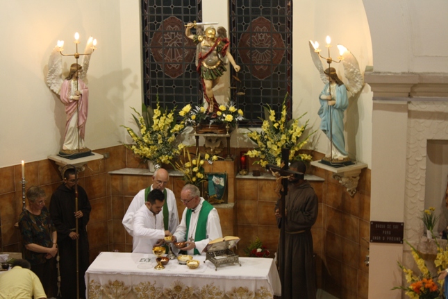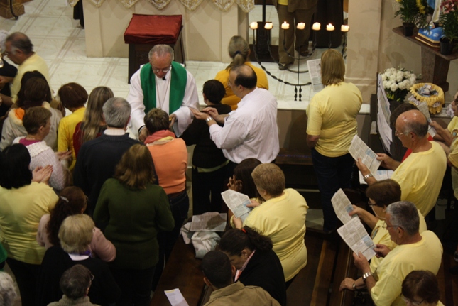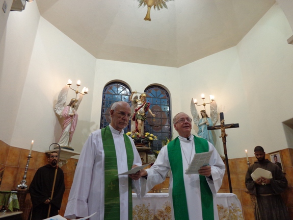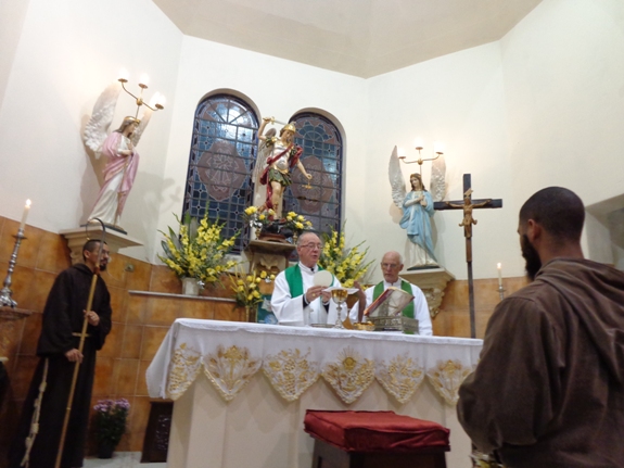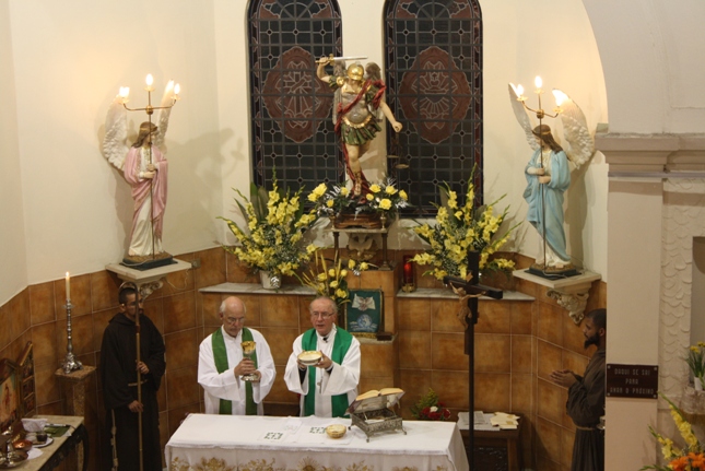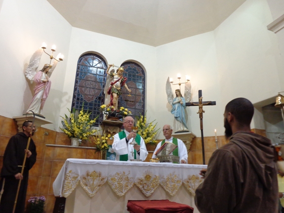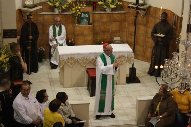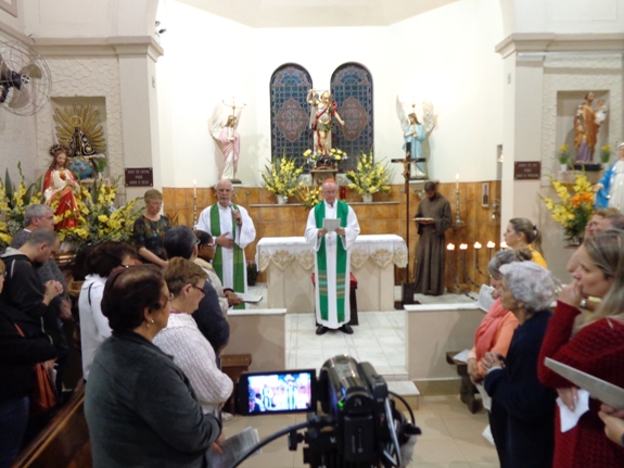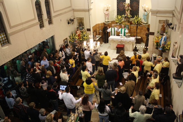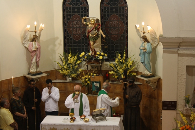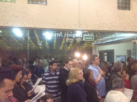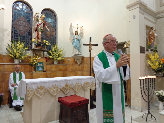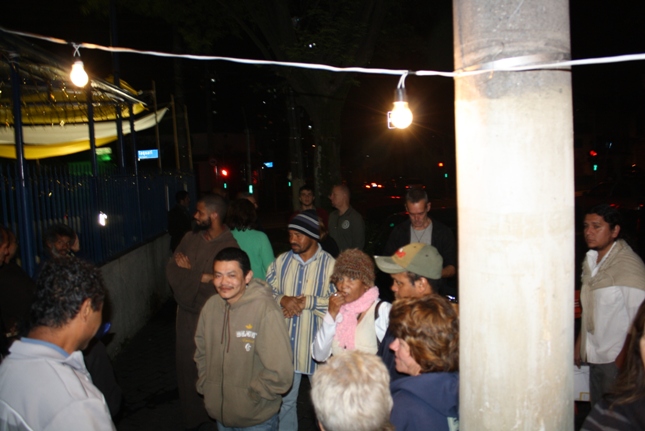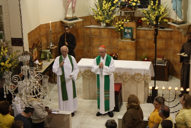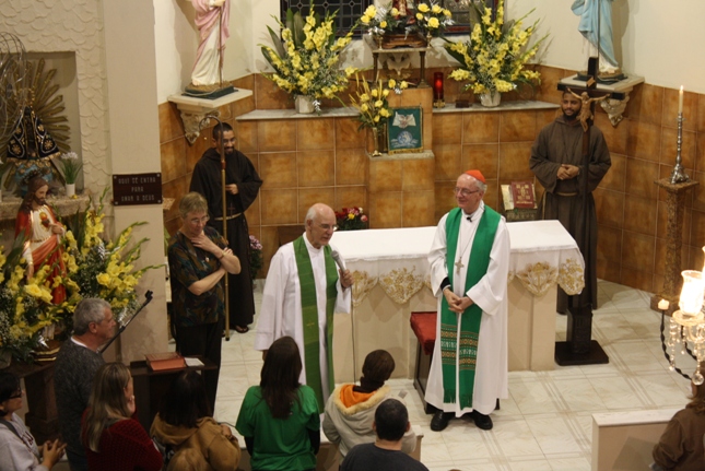 Na missa das 18hs, presidida por Dom Cláudio Hummes e concelebrada pelo Pe Júlio Lancellotti, a homília sobre a parábola do Senhor Jesus sobre o rico,  o pobre Lázaro e a vida eterna. A igreja mostrando o caminho. Por oportuno, chegaram moradores de rua e também aqueles acolhidos pela Casa de Oração do Povo da Rua, da Missão Belém, que deram um grande abraço do Arcebispo emérito de São Paulo. No final da missa, o Pe Julio pediu e Dom Cláudio aceitou levar cartas da Comunidade São Miguel e da Pastoral do Povo da Rua ao Papa Francisco.