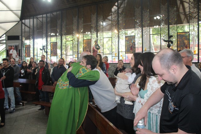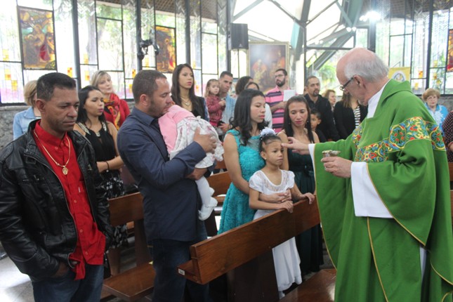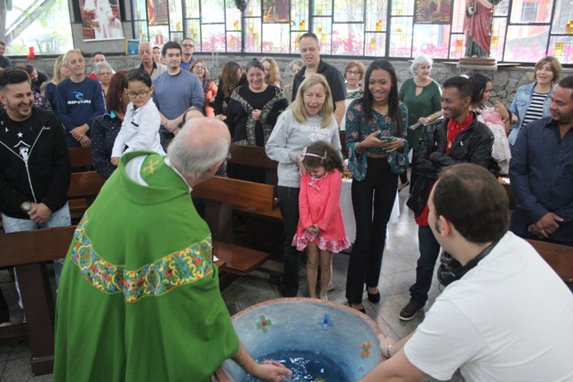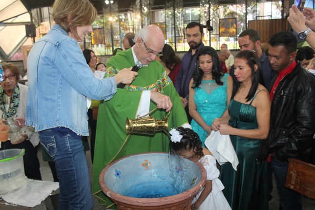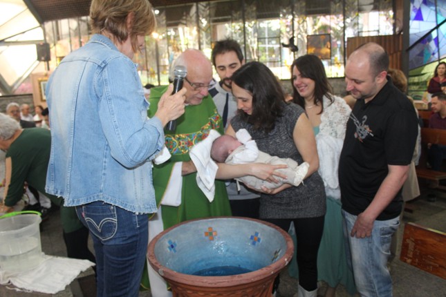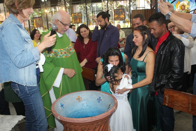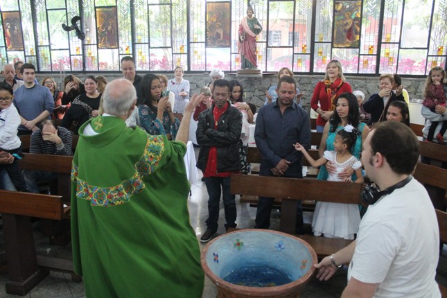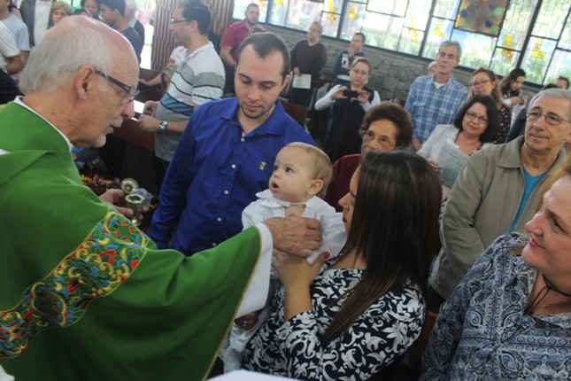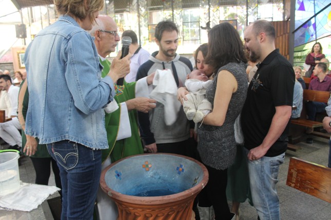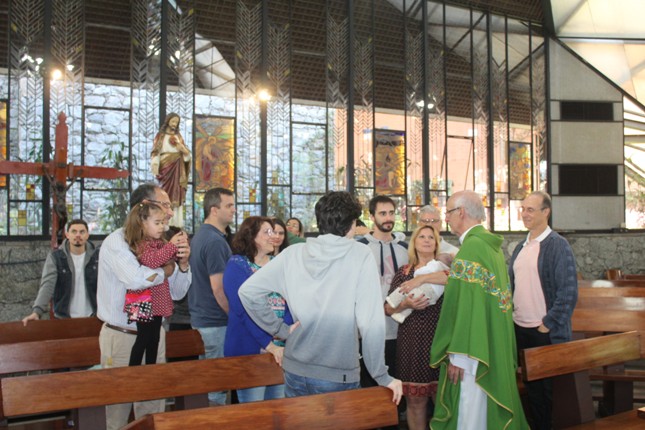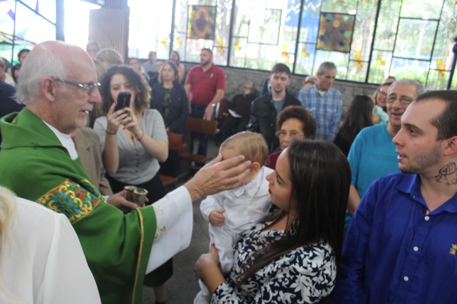 Neste domingo, mais 16 crianças foram batizadas na Comunidade São Miguel Arcanjo. Dentre elas havia pais e padrinhos que foram há muitos anos batizados pelo Pe Julio. As promessas do batismo se confirmam.