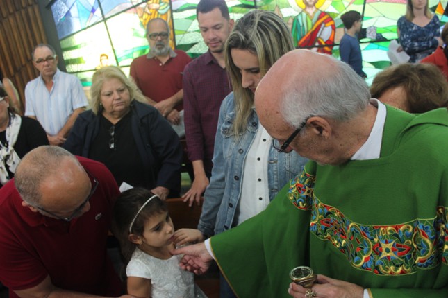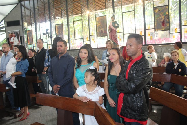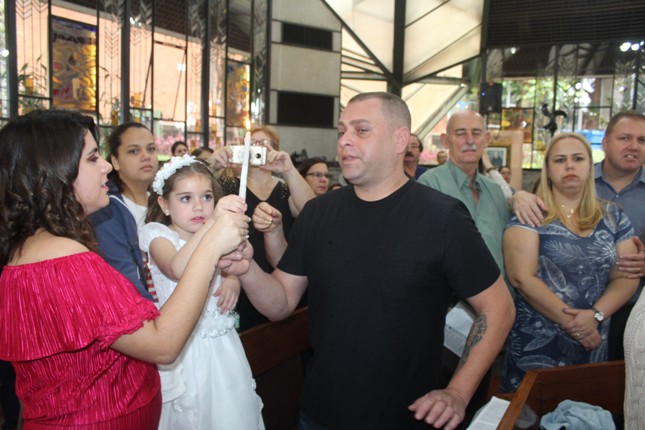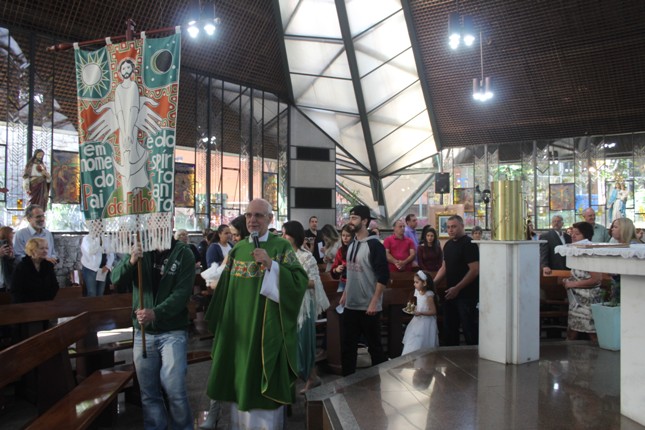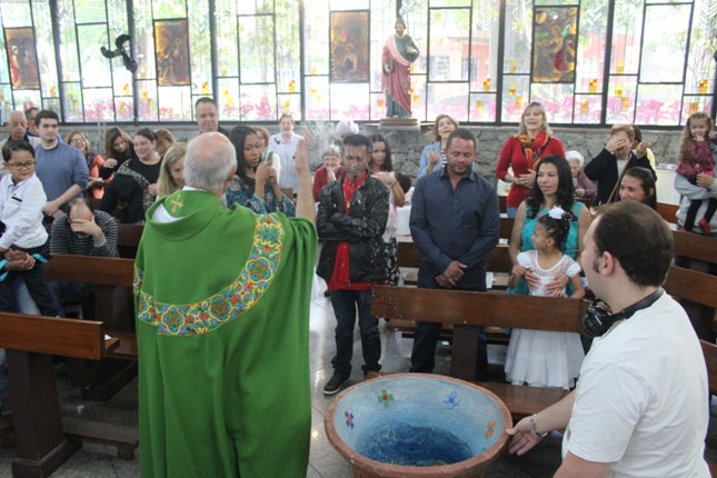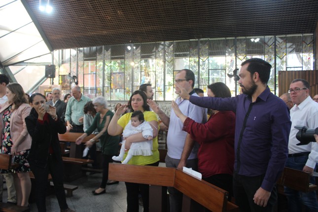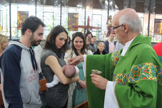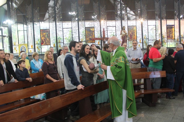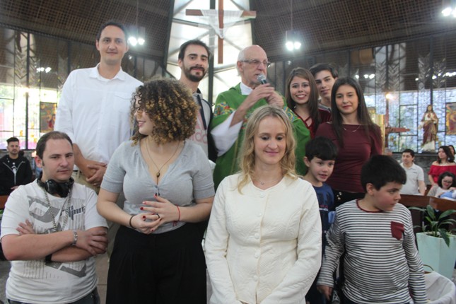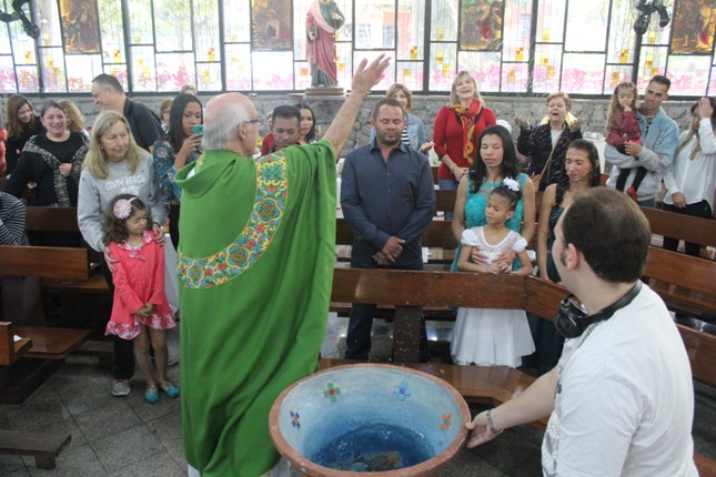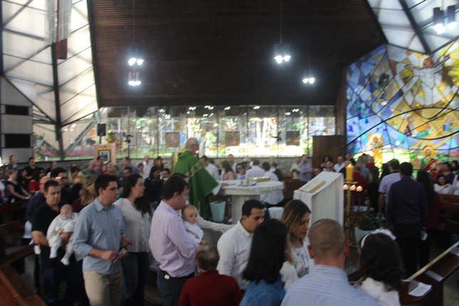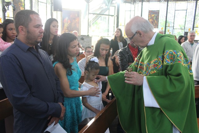Neste domingo, mais 16 crianças foram batizadas na Comunidade São Miguel Arcanjo. Dentre elas havia pais e padrinhos que foram há muitos anos batizados pelo Pe Julio. As promessas do batismo se confirmam.