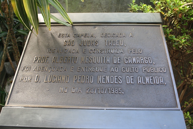 A devoção de tantos brasileiros a São Judas Tadeu e, aqui na Mooca, os educadores Prof. Alberto Mesquita e sua esposa Profª Alzira, deram o nome de sua escola e depois da Universidade a São Judas Tadeu. Também a dedicação da Capela a São Judas Tadeu em 28/10/1985.