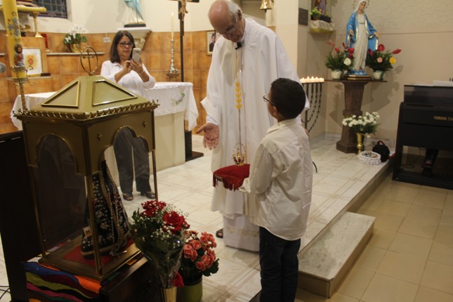 Muito tradicional, no encerramento do mês de Maria, a coroação de Nossa Senhora, no dia 31 de maio. A celebração eucarística ocorreu na Paróquia São Miguel Arcanjo. Nesse dia a comunidade oferece cobertores, agasalhos e meias para serem distribuídos aos moradores em situação de rua. Como estamos nos 300 anos do encontro da imagem de Nossa Senhora Aparecida, a coroação neste ano foi a Ela delicada. Participaram crianças da catequese e pessoas dedicadas da Comunidade São Miguel Arcanjo. Não faltaram rosas, o rosário e a delicada coroa.
