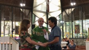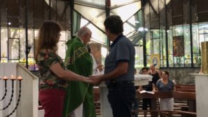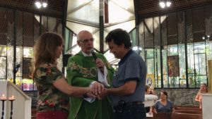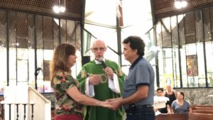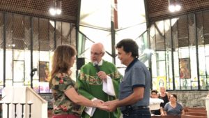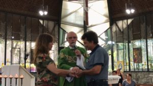 Wanderlei e sua esposa, que vieram de Petrópolis – RJ, receberam a renovação das bênçãos do matrimônio. Periodicamente esse casal nos visita, no fortalecimento da fé, trazendo exemplos de vida comunitária e atendimento às pessoas carentes, especialmente com o atendimento médico.