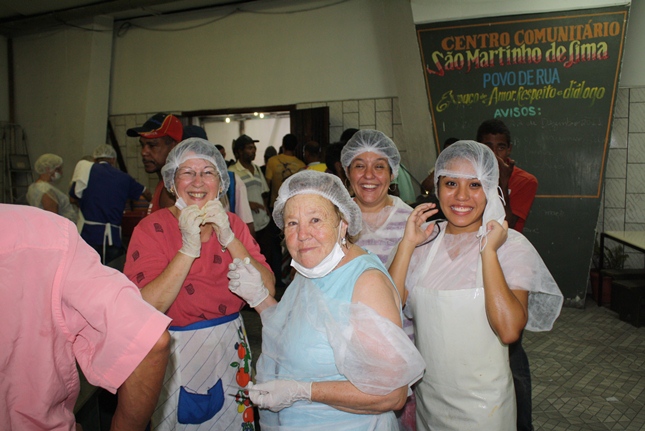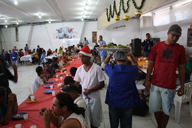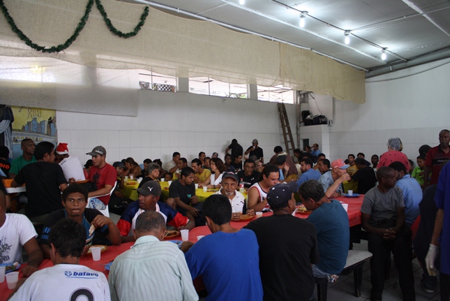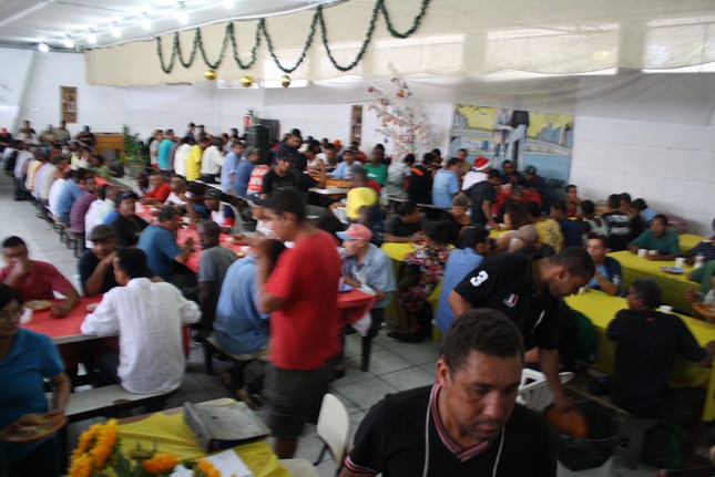 Mais de 750 pessoas comemoram o Natal com o tradicional almoço no Centro Comunitário São Martinho de Lima do Povo da Rua. A refeição tinha como ingredientes principais o carinho, amor e o voluntariado (e não menos importante, os frangos doados). Saia um grupo, outro chegava e as bandejas com os pratos (bem cheios) iam sendo distribuídos.