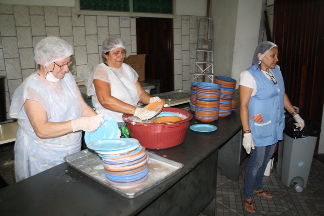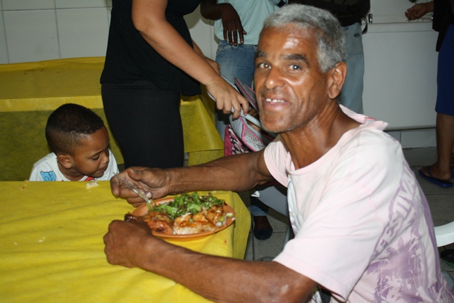 Os representantes da comunidade São Miguel Arcanjo, uns trazendo os frangos, outros estavam lá ajudando na cozinha. Tinha voluntária com um braço quebrado, mas que não a impediu de colaborar. Sorrisos de quem ajudava e, sobretudo, dos nossos irmãos nessa refeição caprichada, comemorando o nascimento de Jesus. Na partilha a esperança de um tempo melhor.