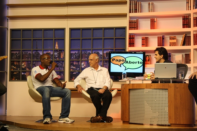 O Pe. Julio Lancellotti e o ex-morador de rua Marivaldo da Silva Santos participaram na segunda-feira, 09/11, do programa Papo Aberto, apresentado pelo educador e vereador Gabriel Chalita na TV Canção Nova.