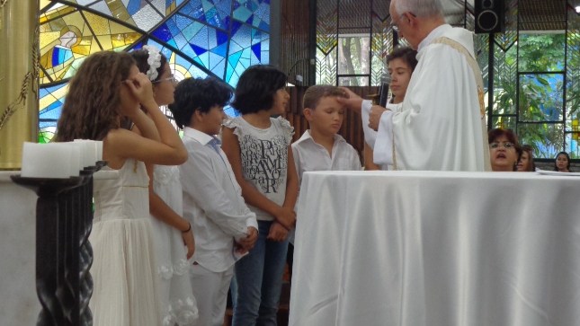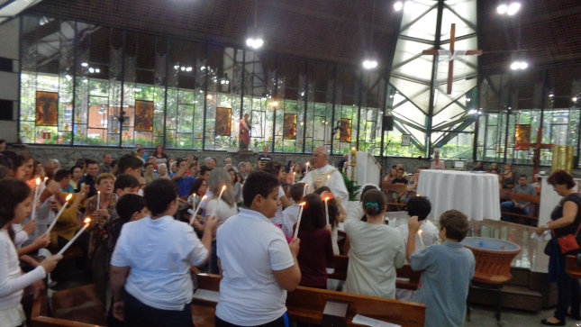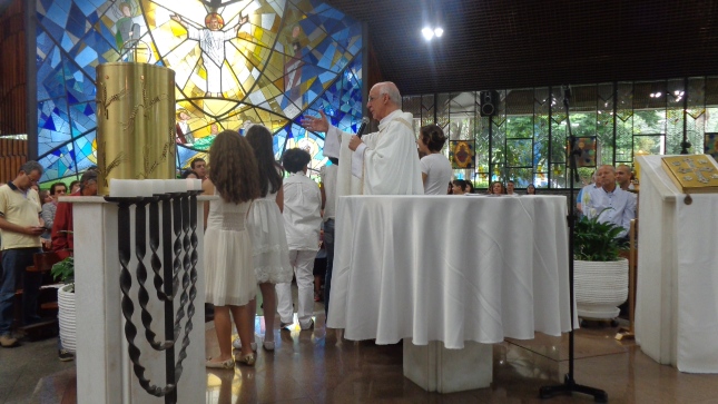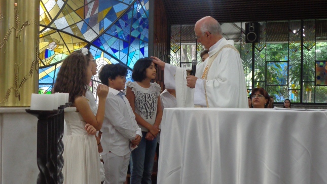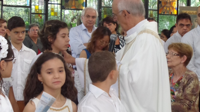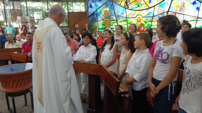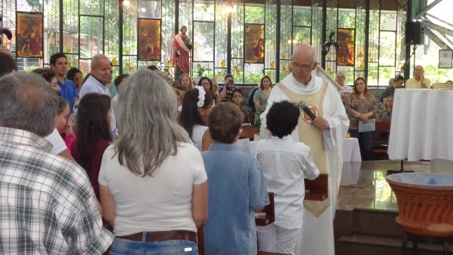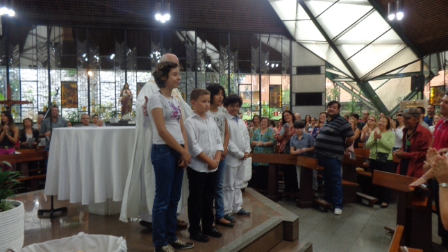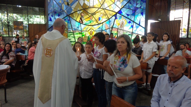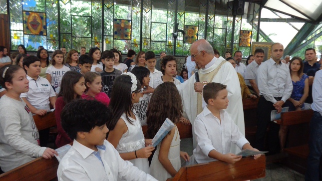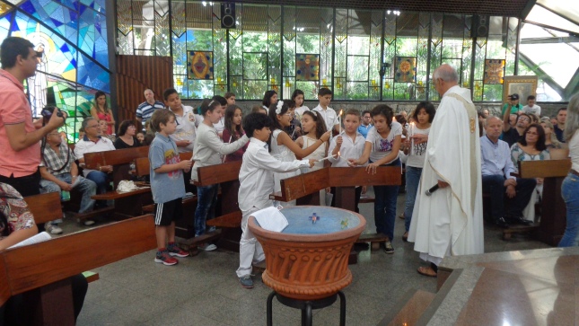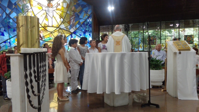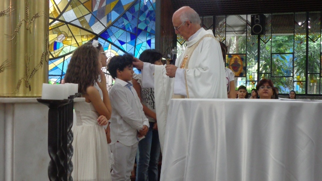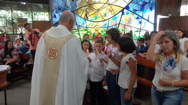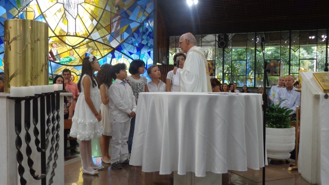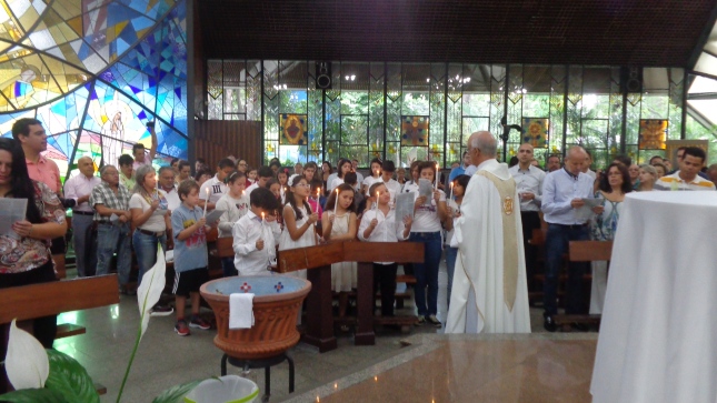 Na caminhada para a Primeira Eucaristia deste ano de 2015, alguns jovens foram batizados e outros confirmaram o batismo, no dia 26/04/15 às 10hs na celebração especial na Capela São Judas Tadeu. Nesse mesmo dia as homenagens da Comunidade São Miguel Arcanjo à Giselda Aliano, que por muitos anos dedicou-se com carinho à ornamentação do altar da Igreja São Miguel e, principalmente, rezava por todos nós.