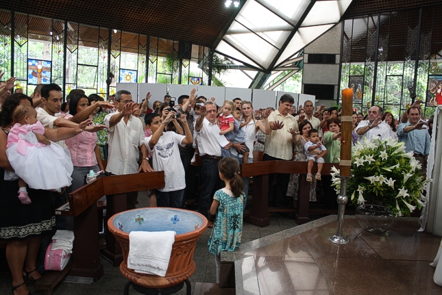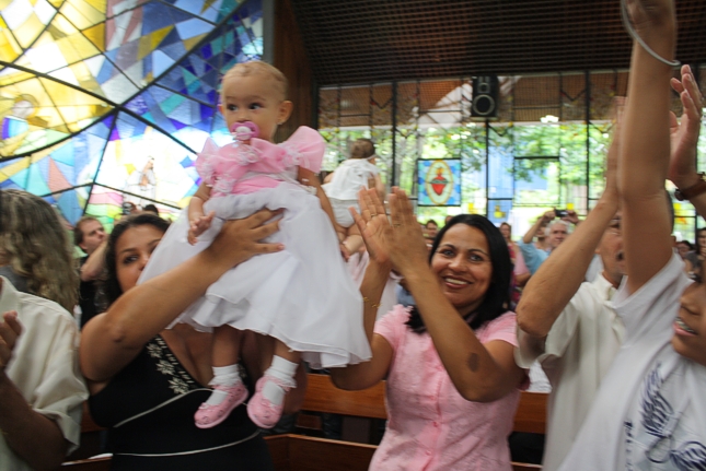 O batizado foi muito bom mesmo , assim como a missa toda , muita unção e muita clareza nas palavras do nosso pe. Julio . Que Deus continue abençoando cada vez mais nosso PE. e a comunidade .