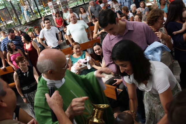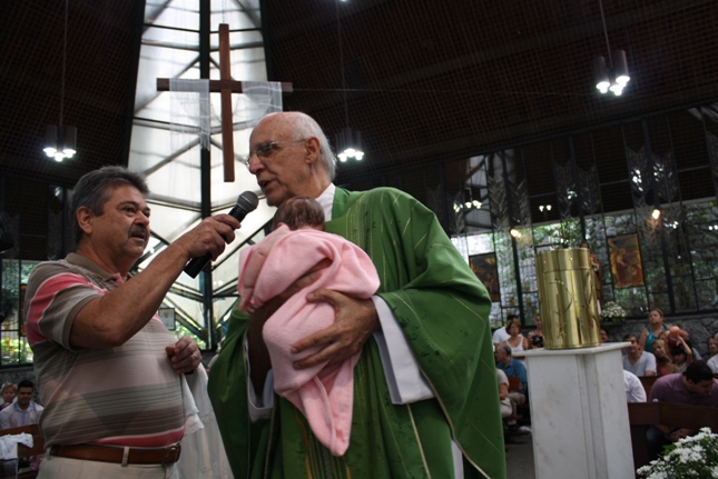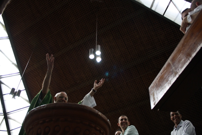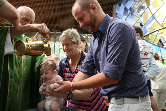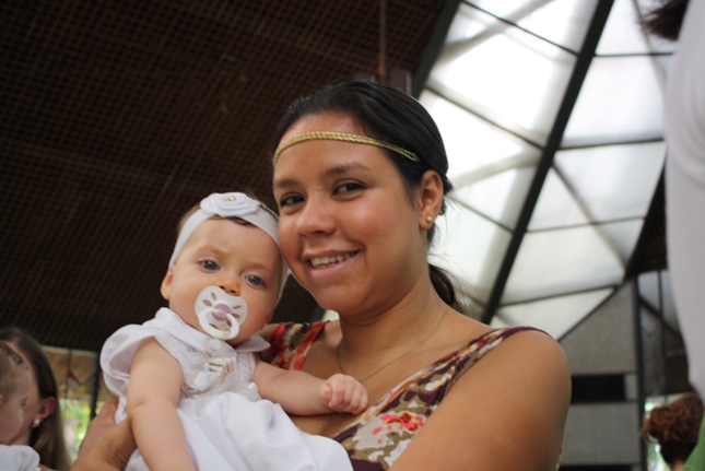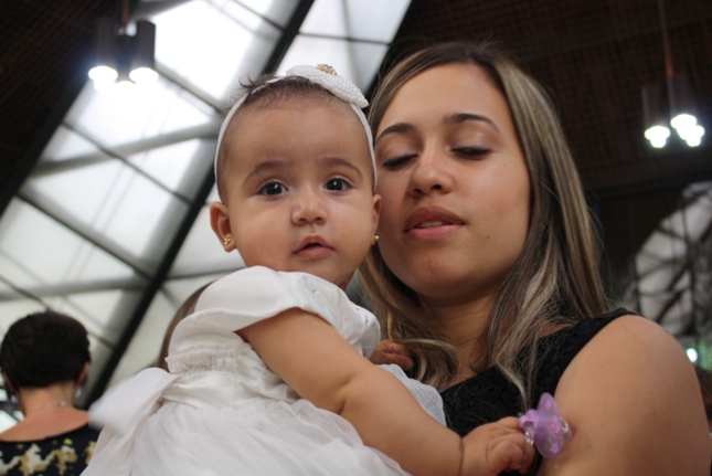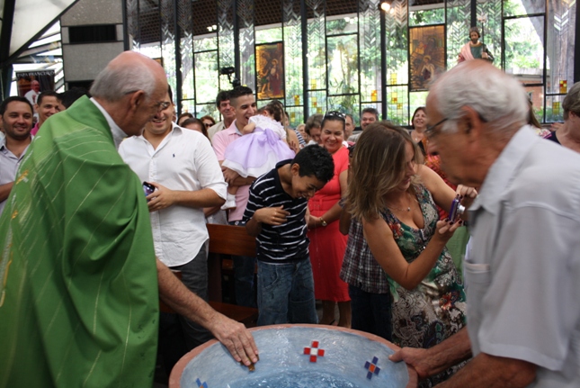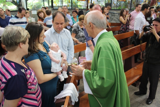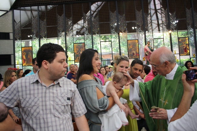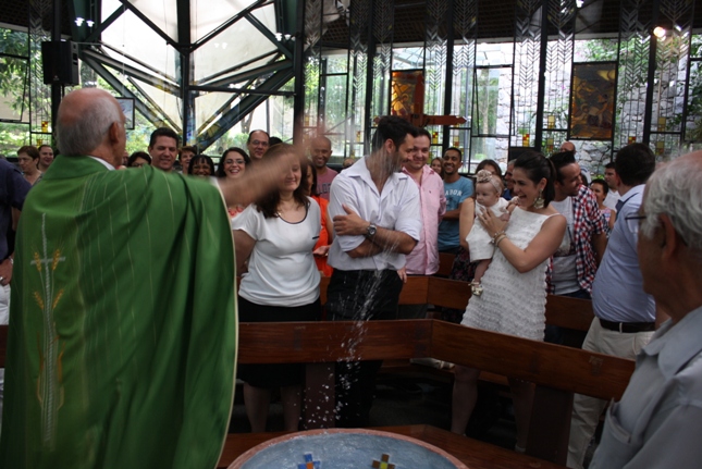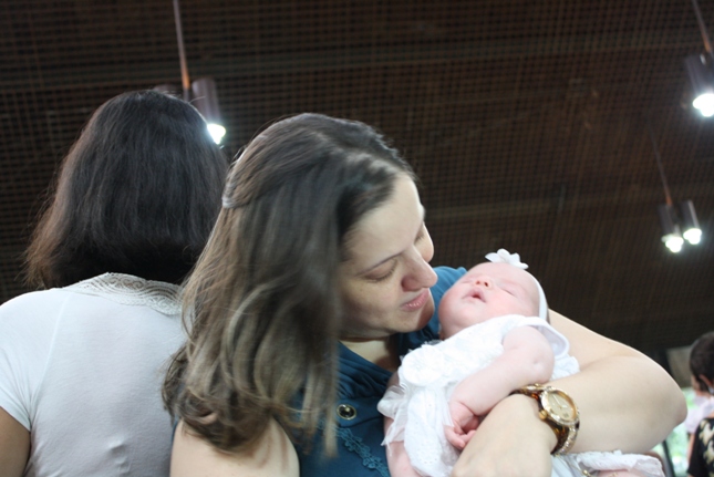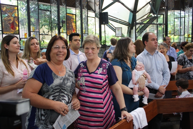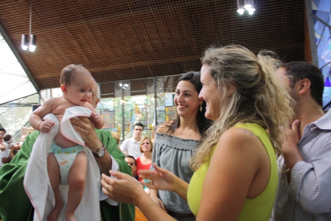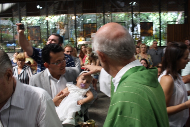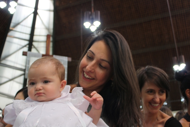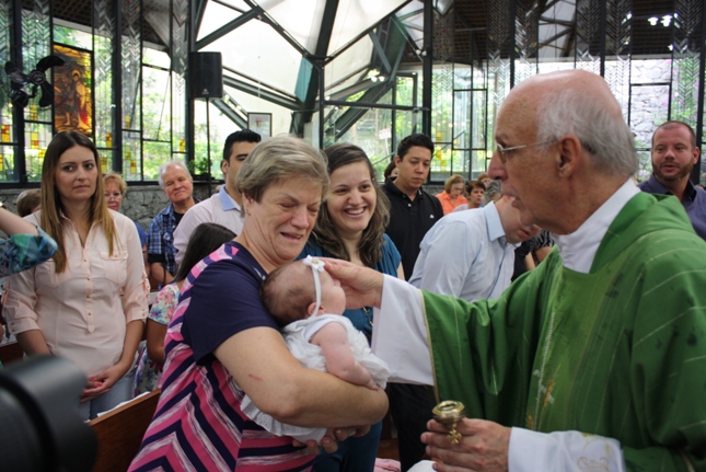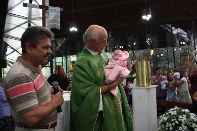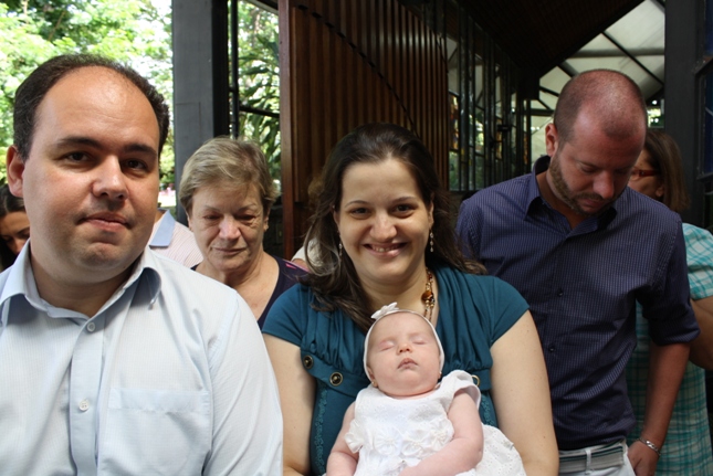 Dia especial para a vovó Ana, que todos os domingos se disponibiliza para auxiliar na Liturgia na Capela e, que neste domingo, batizou sua neta Rafaella Maria. Alegria também de todos, inclusive com a aspersão da água (ao som da música Banhados em Cristo somos uma nova criatura …), como veremos nas fotos.