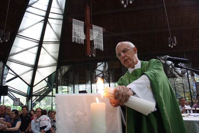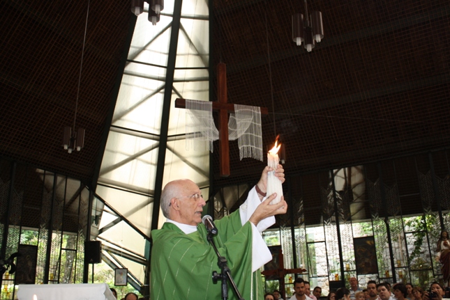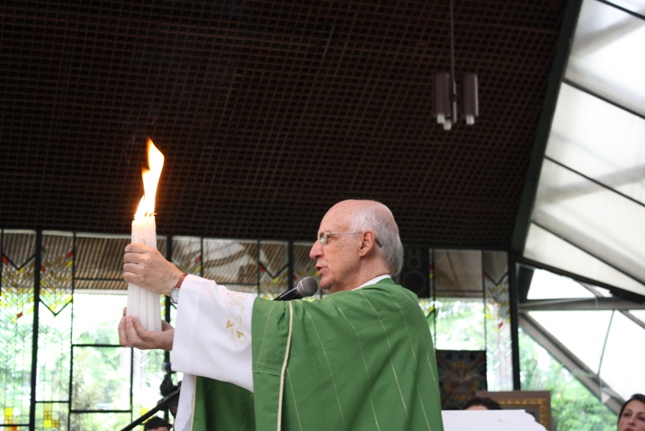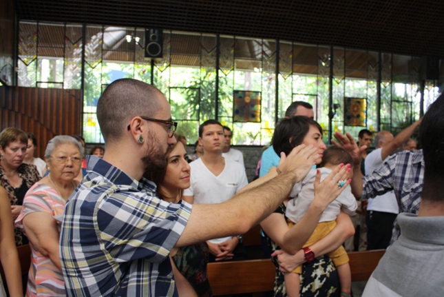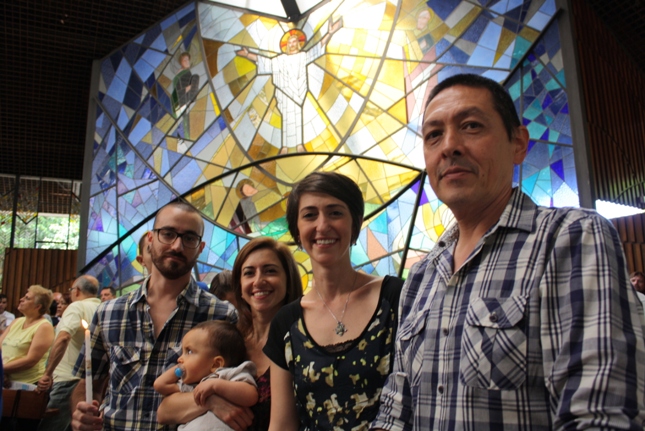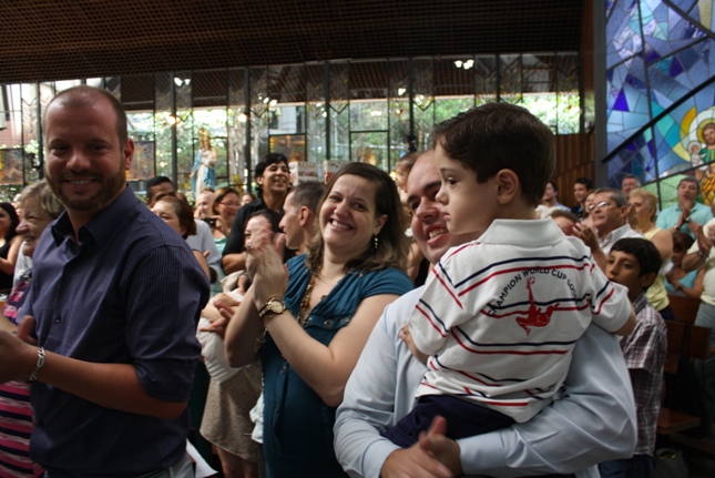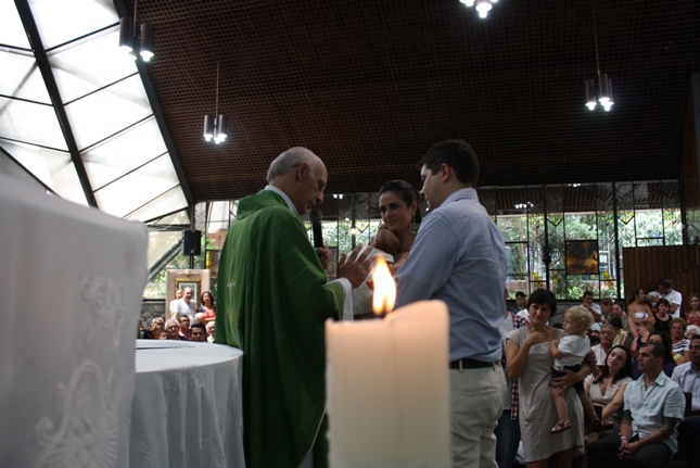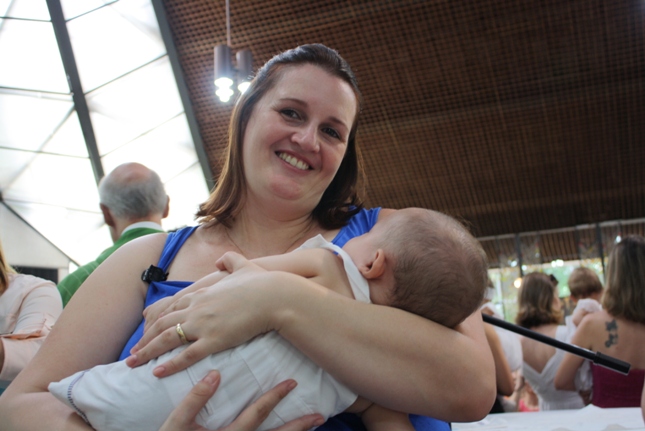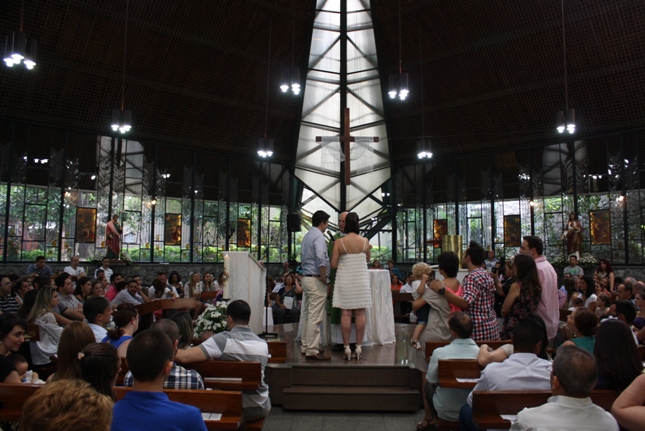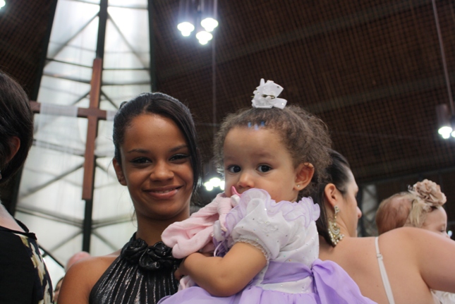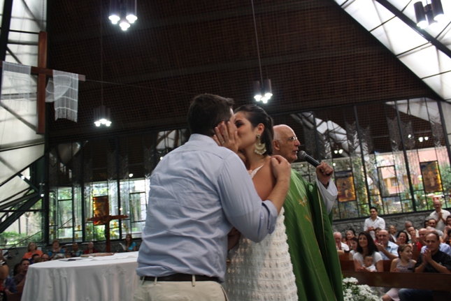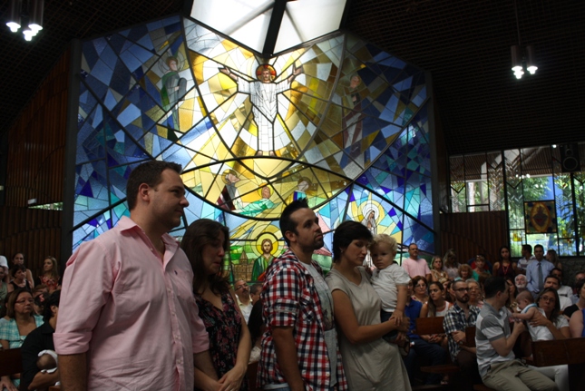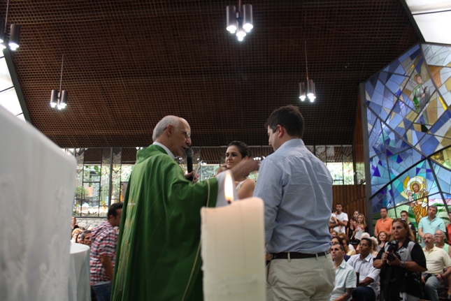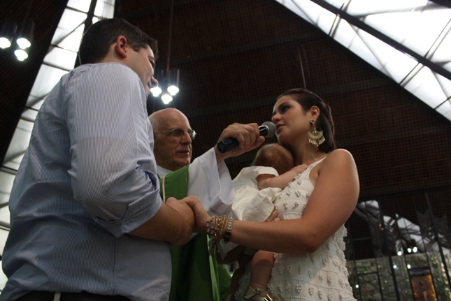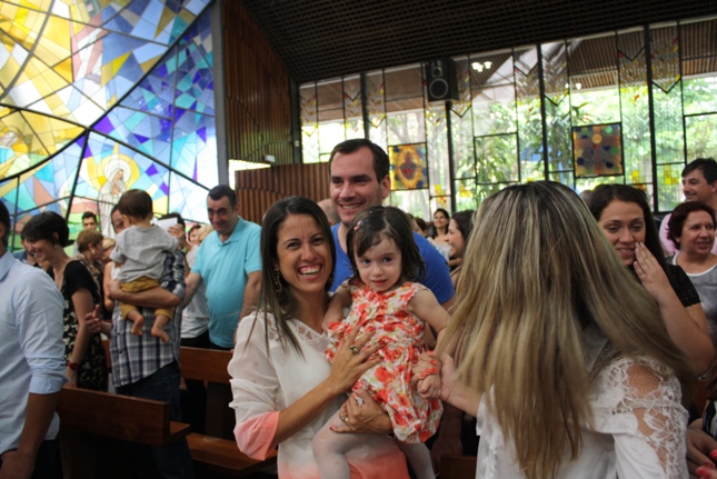 Os papais da Alice, Karla Simone Rufino e Bruno Malavazi, receberam o sacramento do matrimônio, também numa belíssima celebração da legitimação durante a missa das 10h.