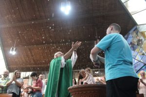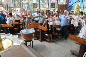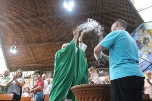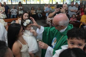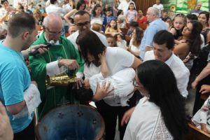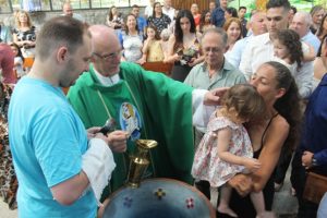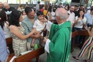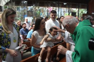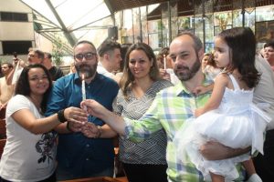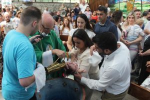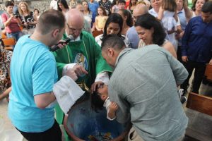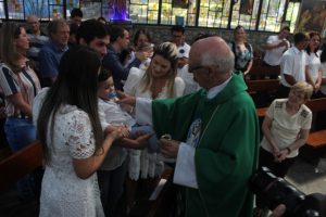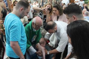 Receberam o sacramento do batismo o Arthur, Bernardo, Bianca, Davi, Estela, Iuri, Helena, Larissa, Leonardo, Maria Luiza, Martina, Melissa, Micaele, Sofia e o Tomaz.