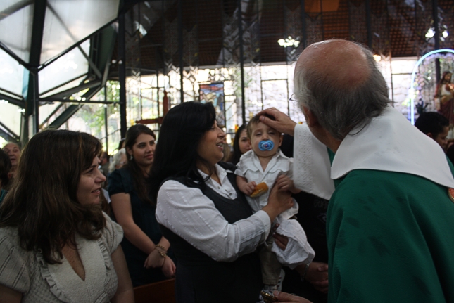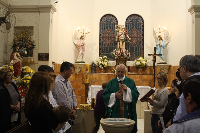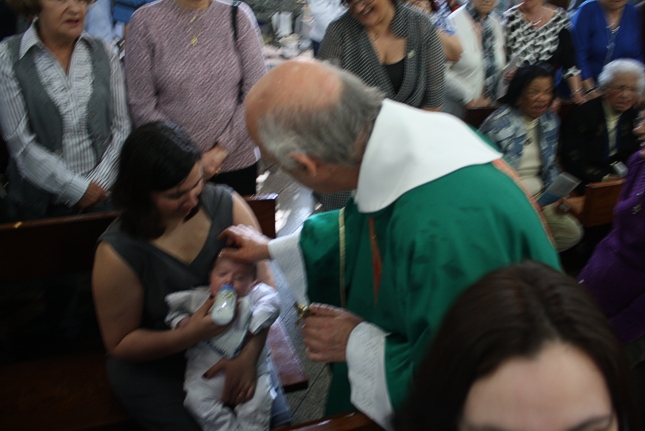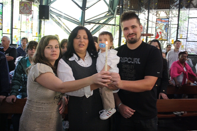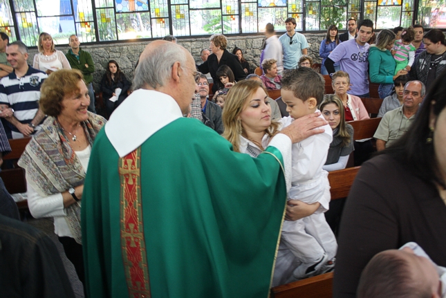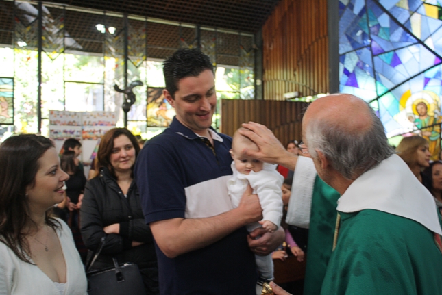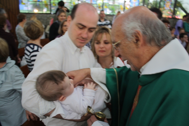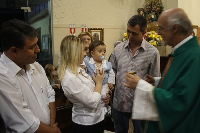À noite, na igreja São Miguel, foi batizado o Alexandre.
