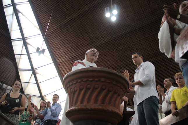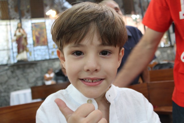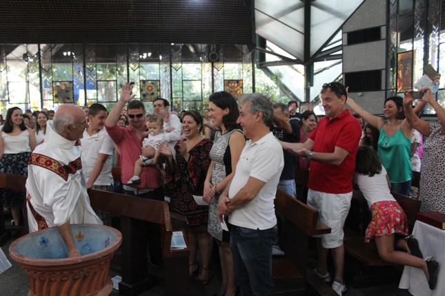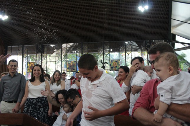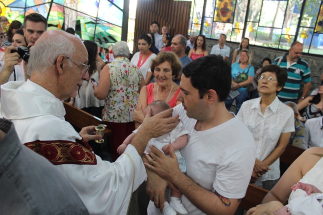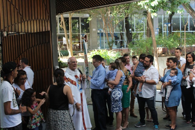 Arthur, Filippo, Jun, Lolla Maria, Lorenzo, Lucas, Manuela, Miguel, Pedro e Vicente foram batizados na Comunidade São Miguel Arcanjo. A celebração foi neste domingo 24/04/2016 na Capela universitária São Judas Tadeu começando às 9h30. Depois do batizado prosseguiu-se com a celebração eucarística. O Evangelho nos mostra o ensinamento básico do Senhor, amai-vos uns aos outros.