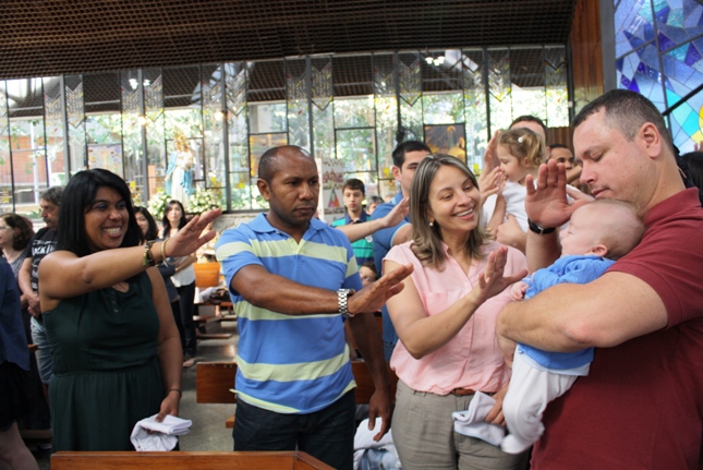 Quatorze crianças foram batizadas na Capela da Universidade São Judas Tadeu, antes da missa das dez, neste domingo 24/08/14. A comunidade São Miguel Arcanjo ficou maior com a Alicia Araújo, Ana Beatriz de Azevedo Jordano, Beatriz Dalla Torre, Eric Fernandes Videira, Isabella Ikeda Biscaldi Clobucar, João Henrique Borges de Lima, Livia Rubia Zupo, Lucas Sammartino São Marcos, Luiz Henrique A. Giulo, Miguel Lobasso Scatinho, Pedro Ferreira de Almeida Pimentel, Pedro Nozeia, Raul Souza Rezende , Valentina Guaitoli Barbosa.
