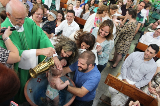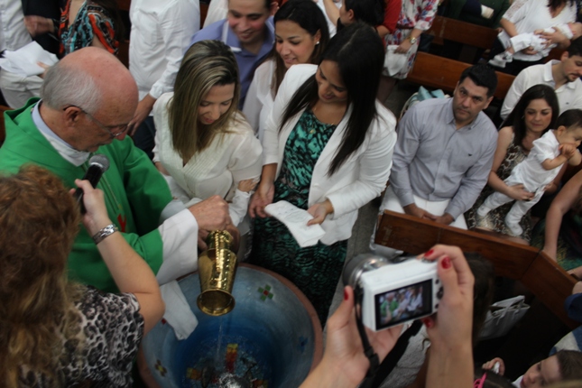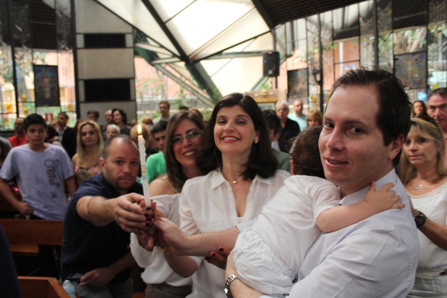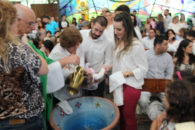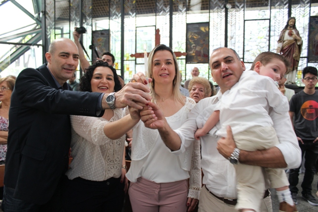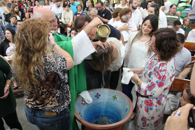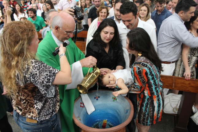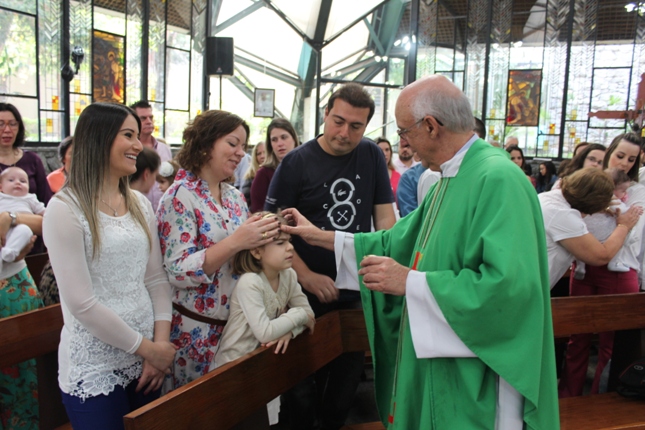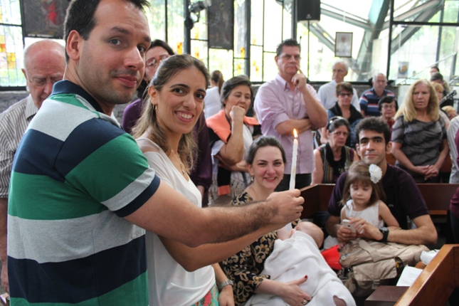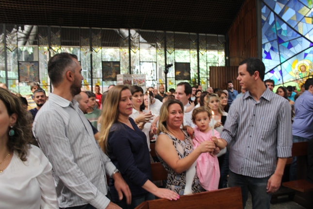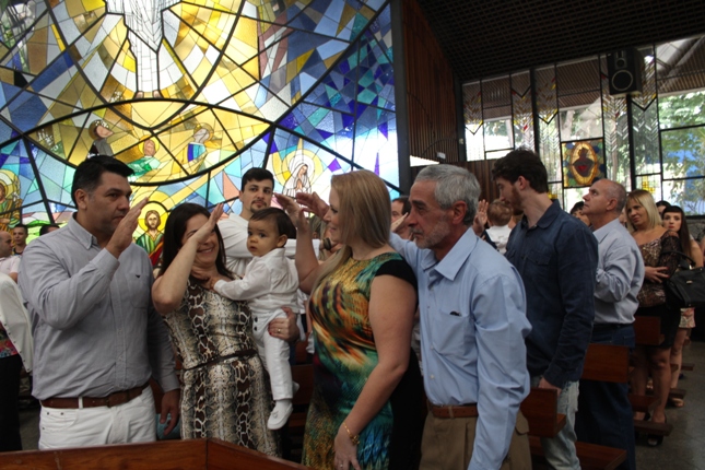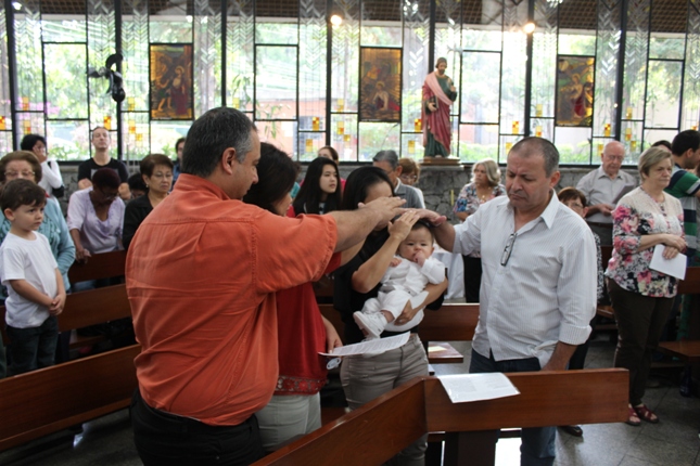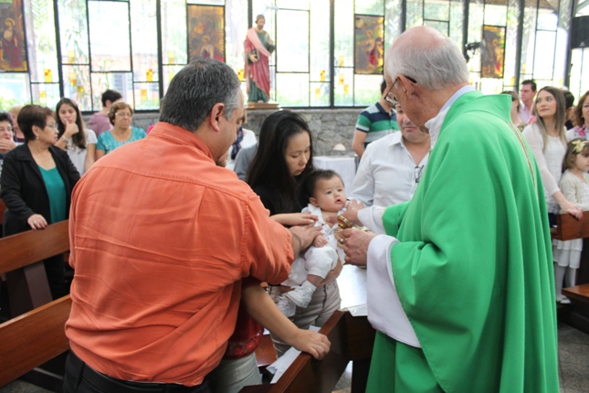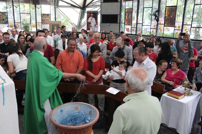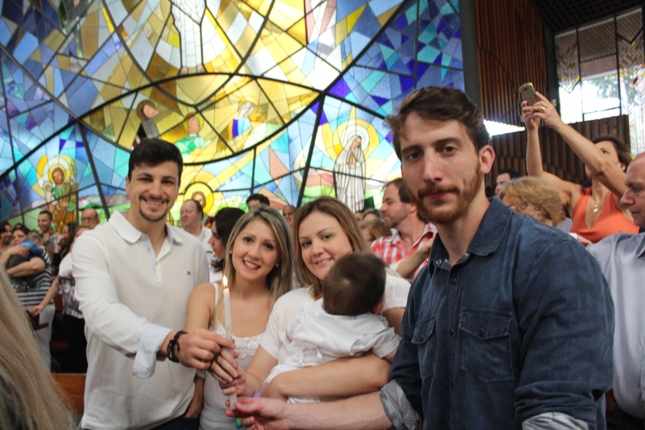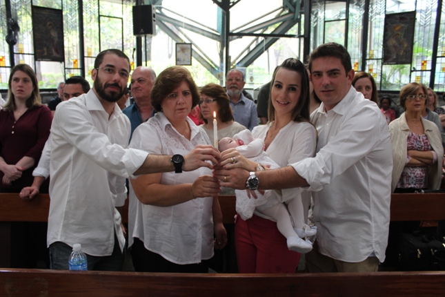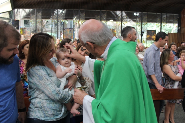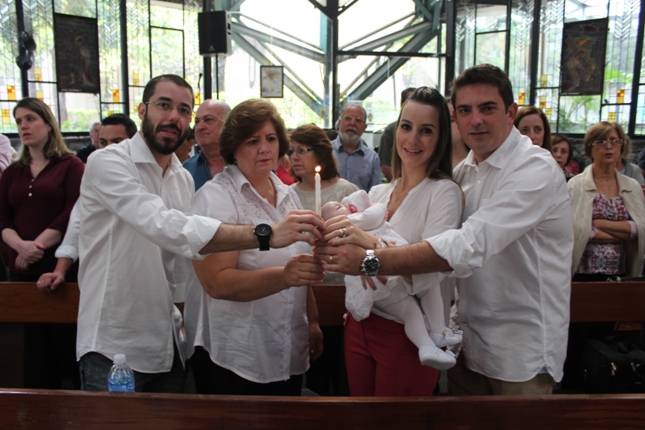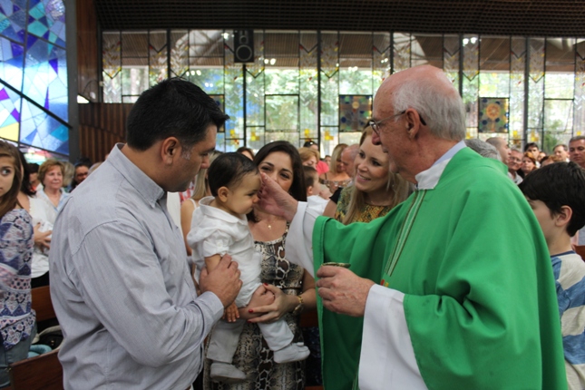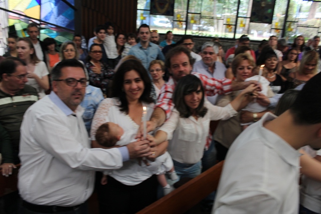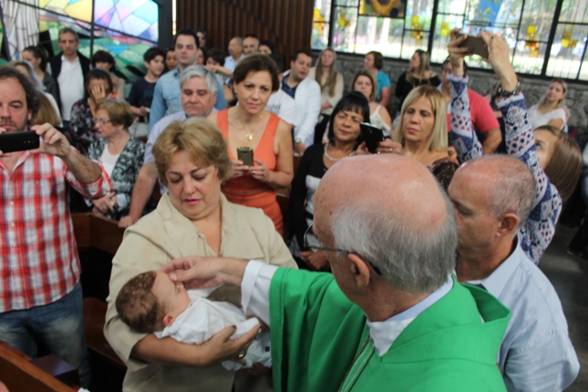 Mais 16 crianças foram batizadas na Comunidade São Miguel Arcanjo. Capela universitária São Judas Tadeu lotada desde as 9h30. Depois do batizado a celebração eucarística, onde a Marisa e o Tiago, papais da Manuela, também receberam o sacramento do casamento.