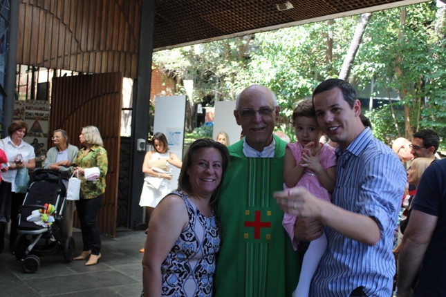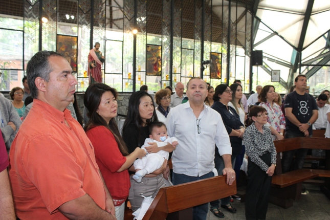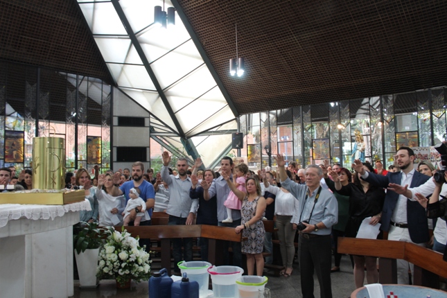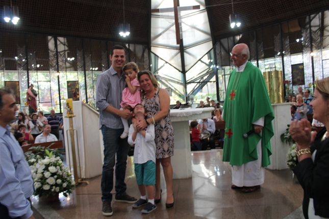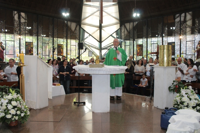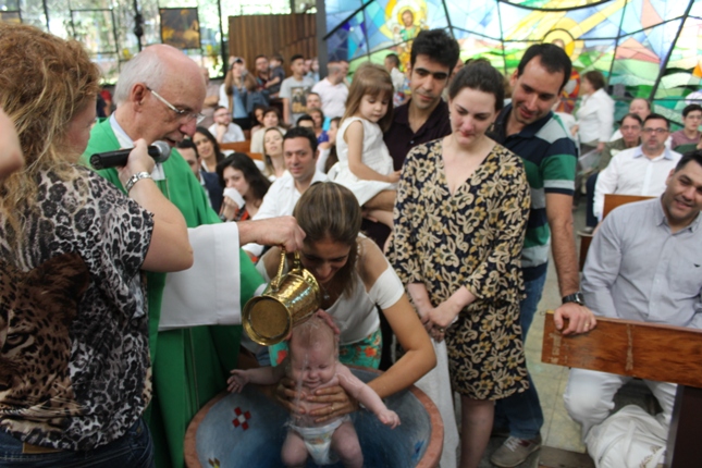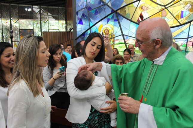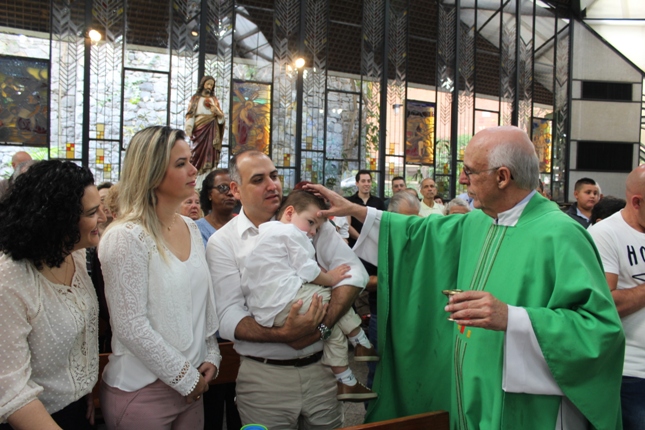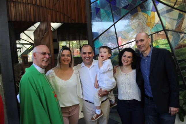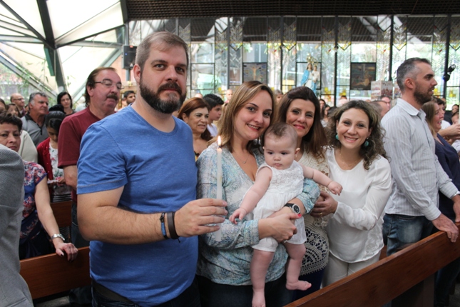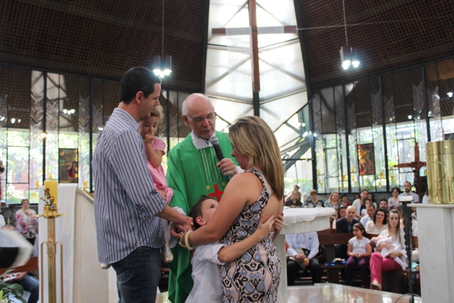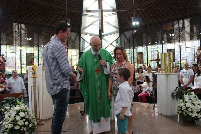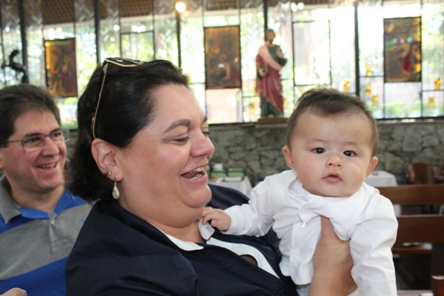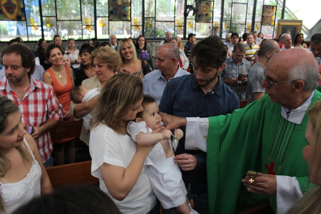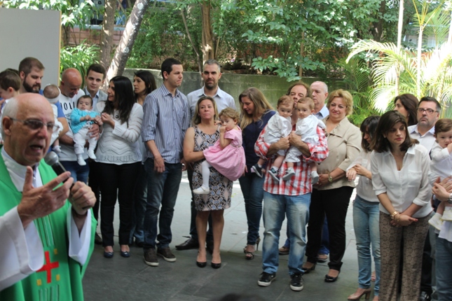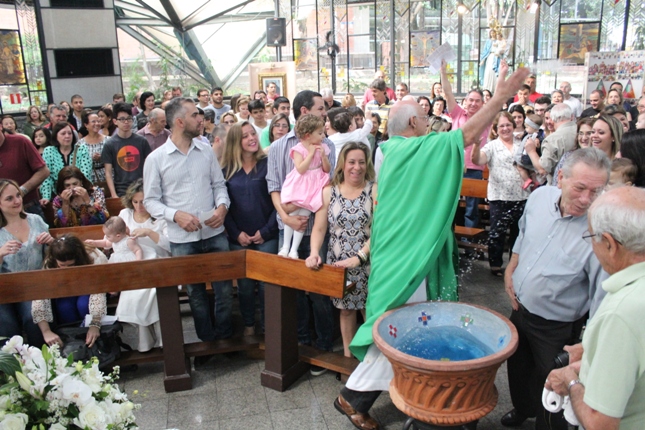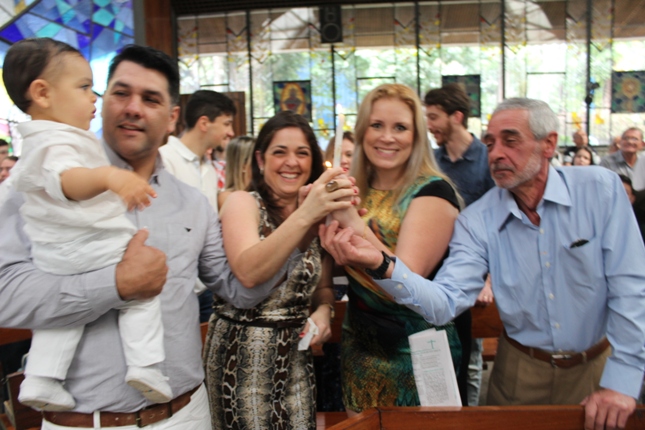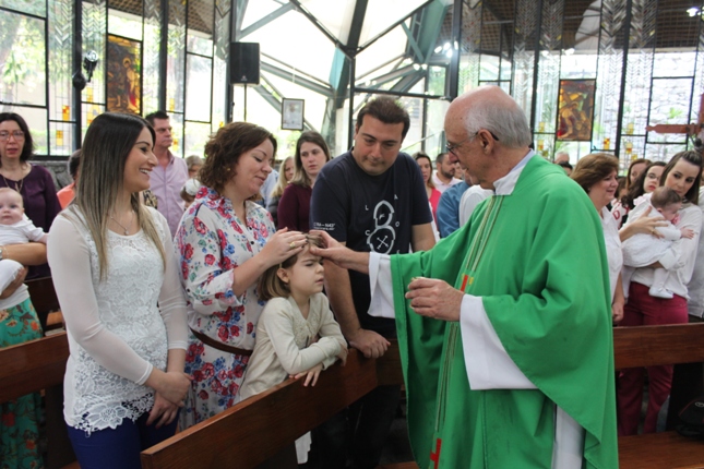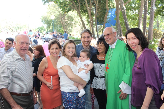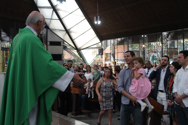 Mais 16 crianças foram batizadas na Comunidade São Miguel Arcanjo. Capela universitária São Judas Tadeu lotada desde as 9h30. Depois do batizado a celebração eucarística, onde a Marisa e o Tiago, papais da Manuela, também receberam o sacramento do casamento.