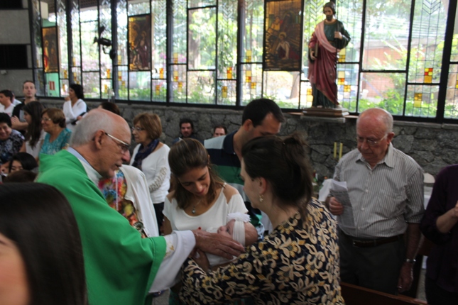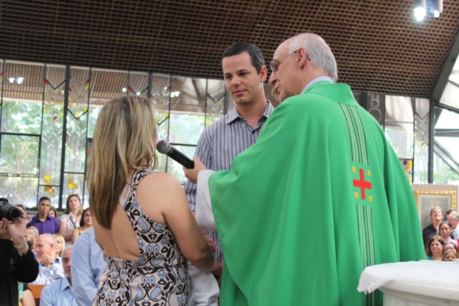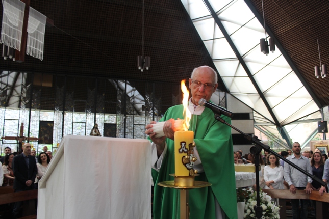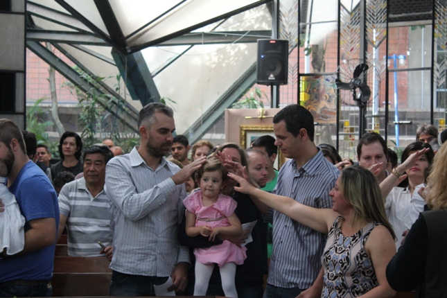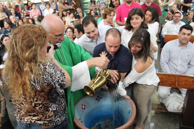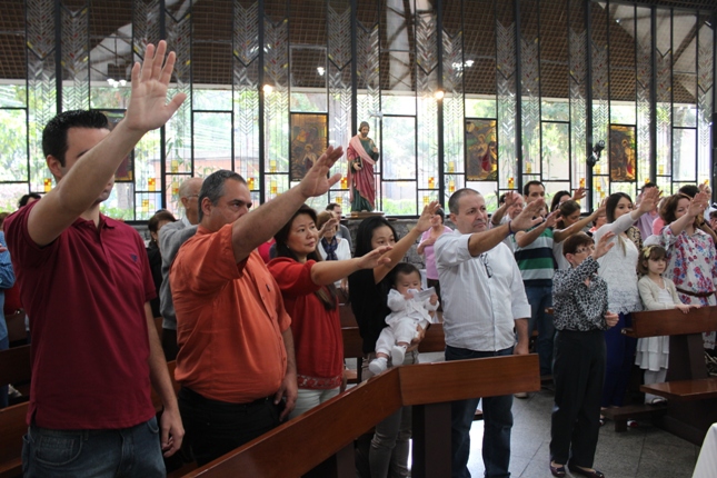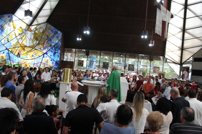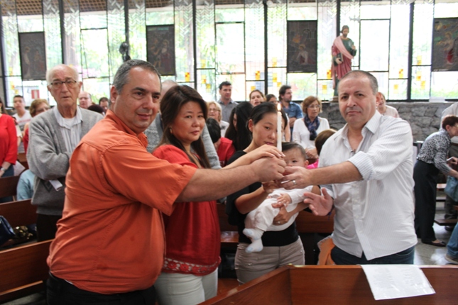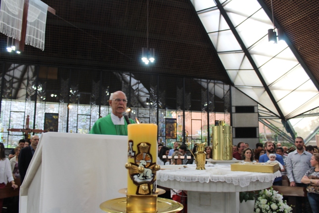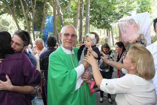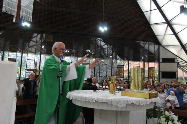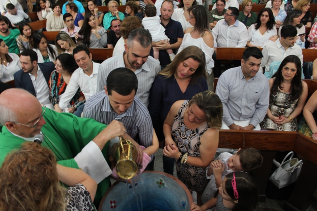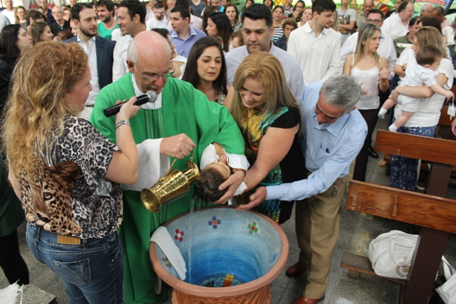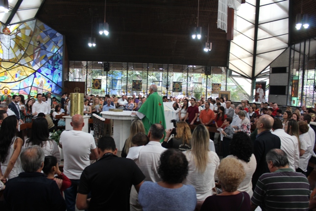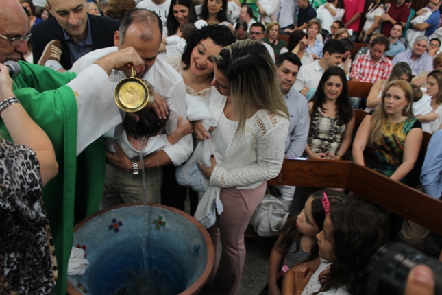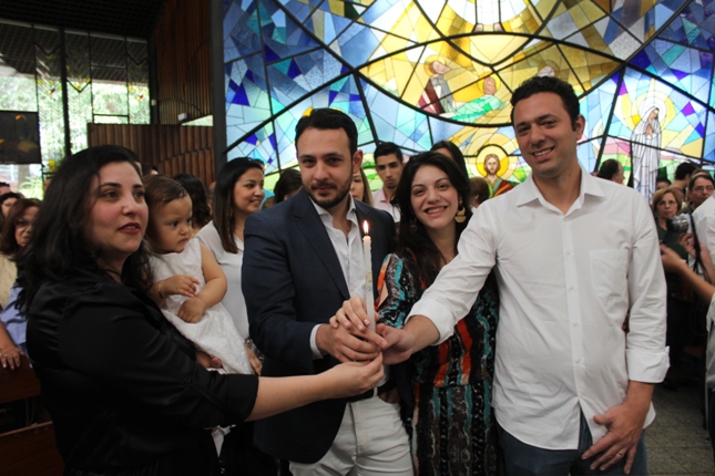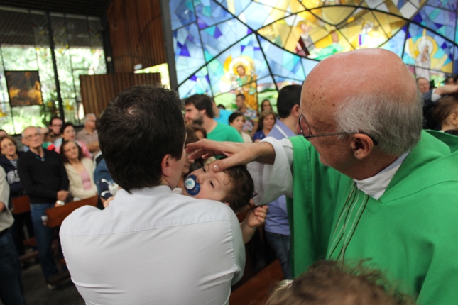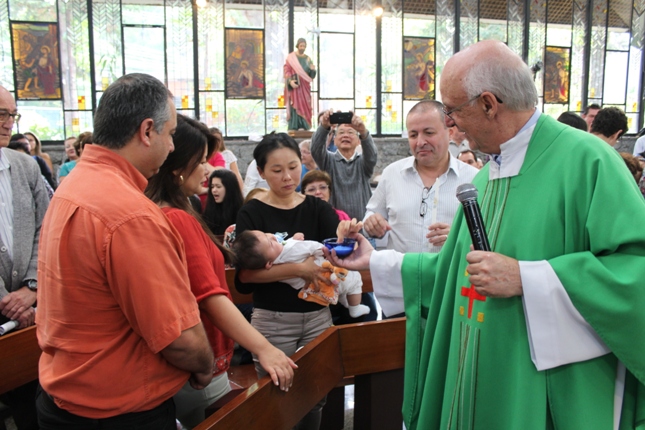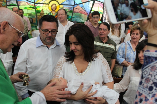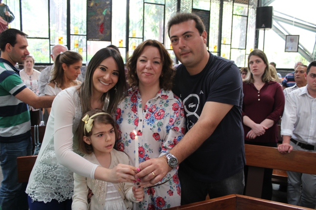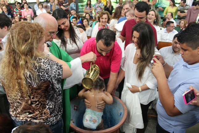 Mais 16 crianças foram batizadas na Comunidade São Miguel Arcanjo. Capela universitária São Judas Tadeu lotada desde as 9h30. Depois do batizado a celebração eucarística, onde a Marisa e o Tiago, papais da Manuela, também receberam o sacramento do casamento.