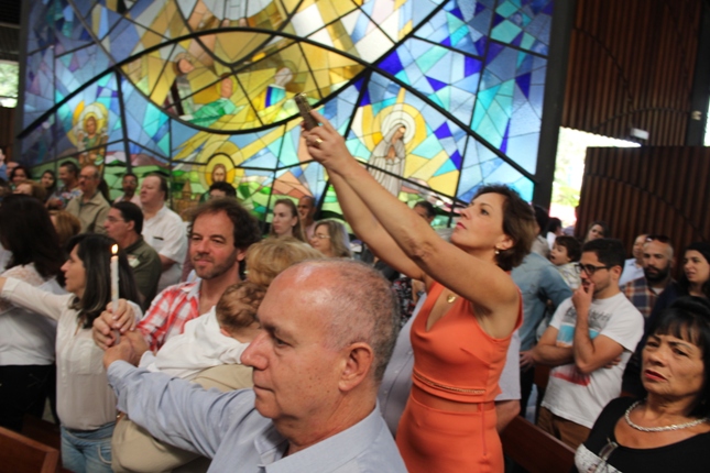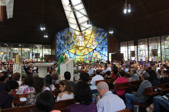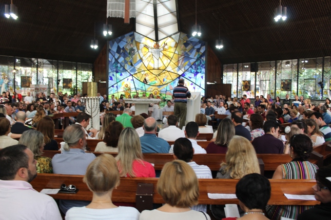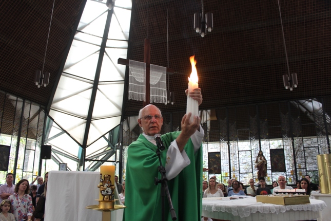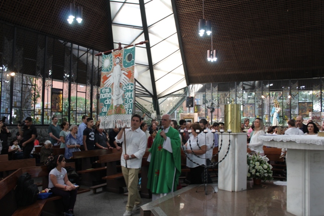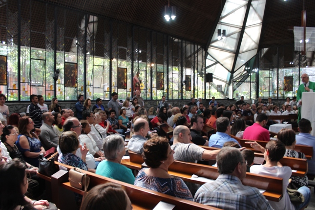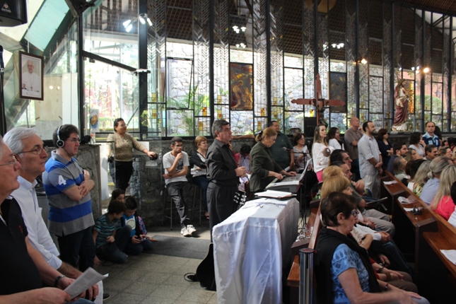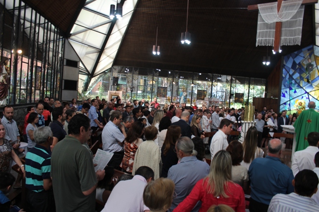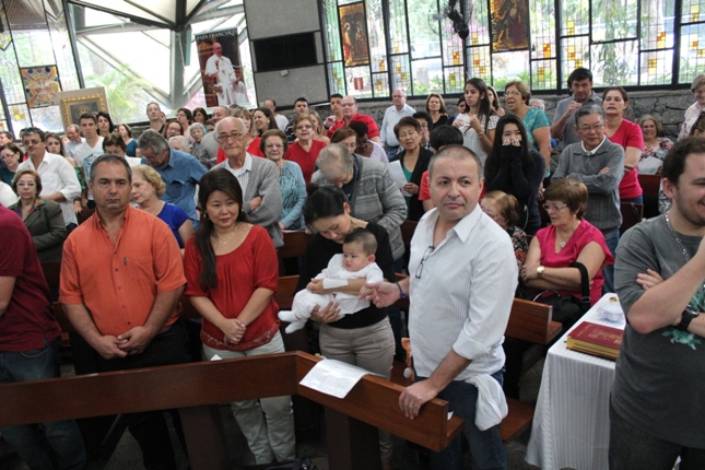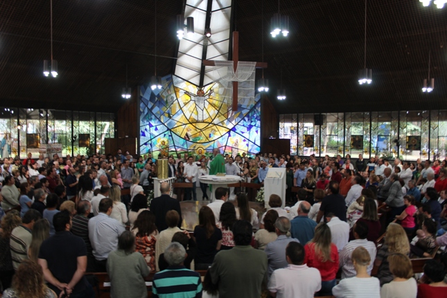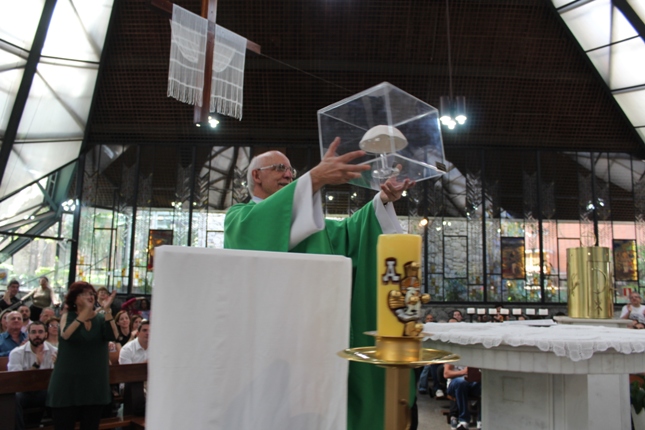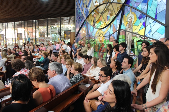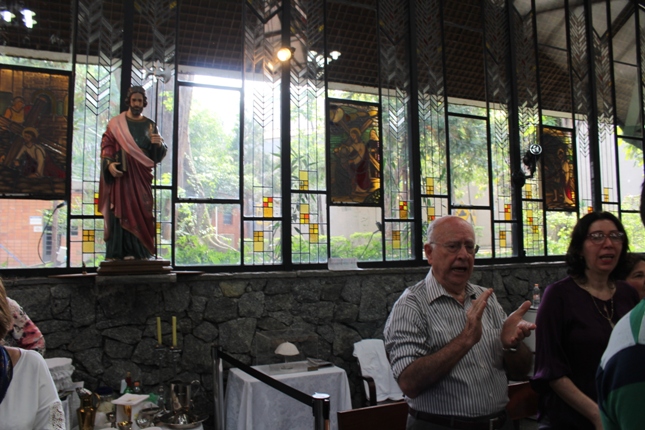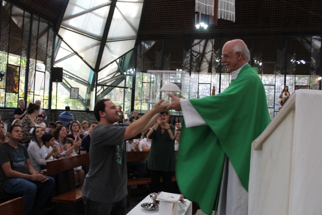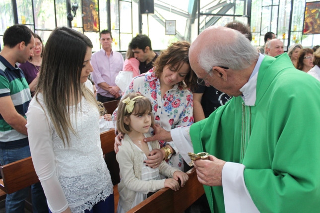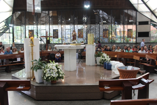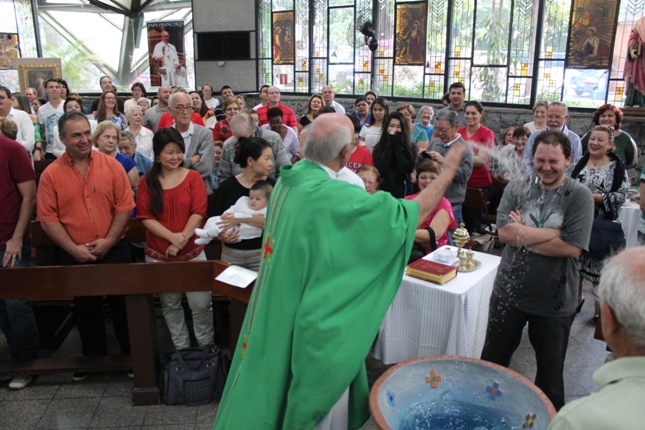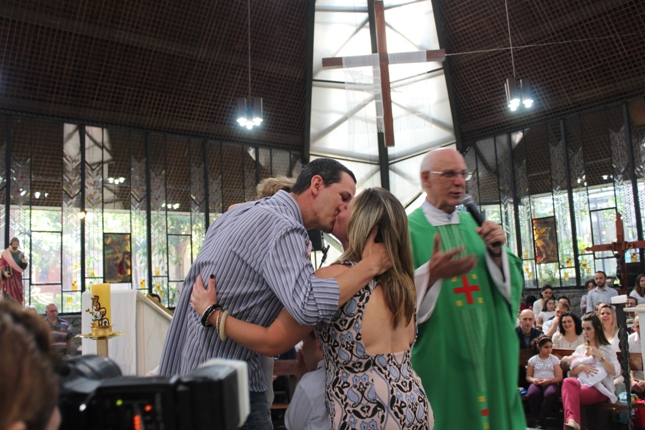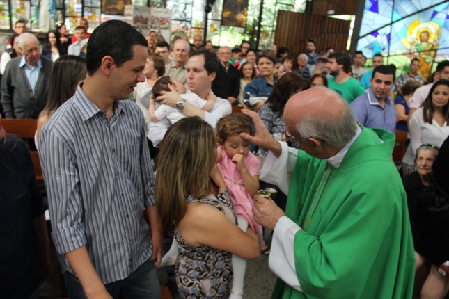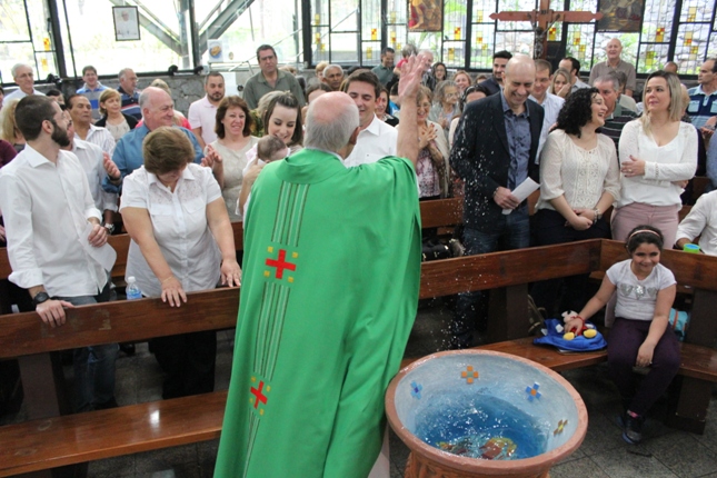 Mais 16 crianças foram batizadas na Comunidade São Miguel Arcanjo. Capela universitária São Judas Tadeu lotada desde as 9h30. Depois do batizado a celebração eucarística, onde a Marisa e o Tiago, papais da Manuela, também receberam o sacramento do casamento.