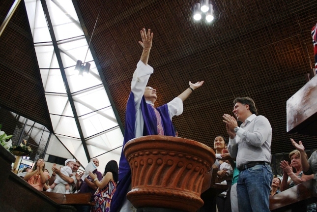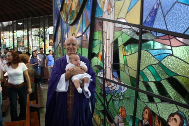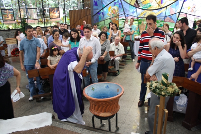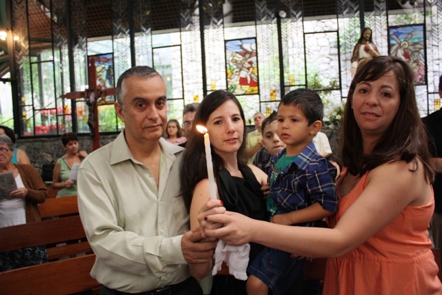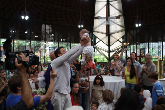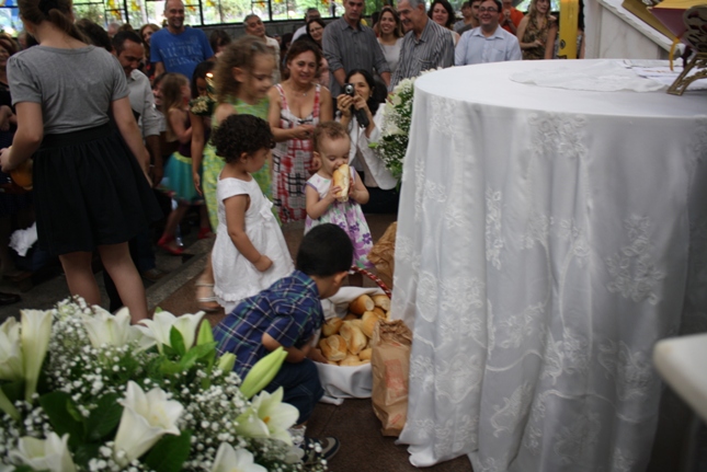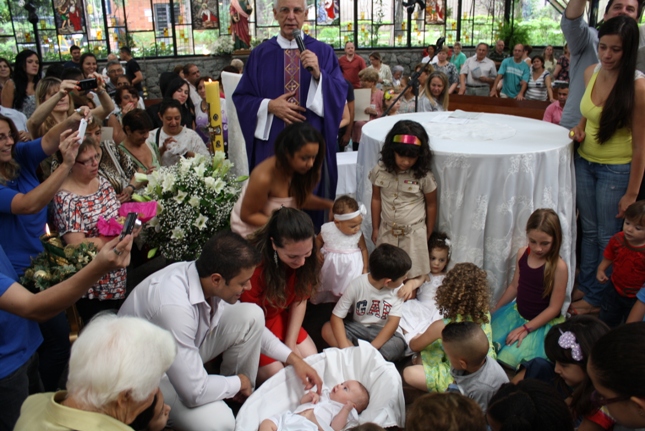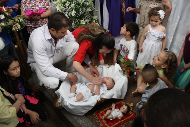 Já no final da celebração, a encenação do nascimento de Jesus. Lucca foi o nosso menino Jesus e seus pais, nos lembraram de Maria e José.
