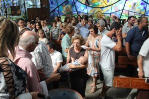 Um domingo especial, na oportunidade do 3º Domingo do Advento, onde a terceira vela foi acesa por um sofredor de rua. Também não faltou emoção com a comemoração de bodas de prata e ao final, o menino Jesus palestino.