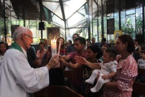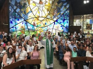 Neste domingo, 24/02/19 na capela da Universidade São Judas Tadeu, mais 13 crianças e 2 adultos foram batizados na Comunidade São Miguel Arcanjo.