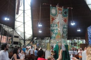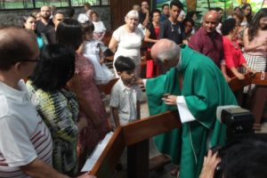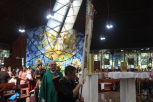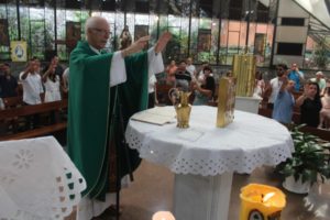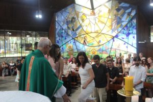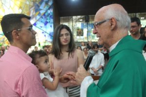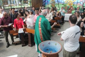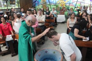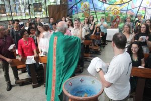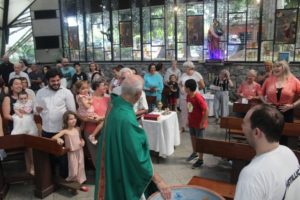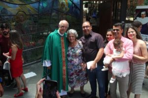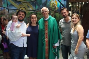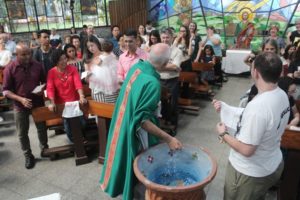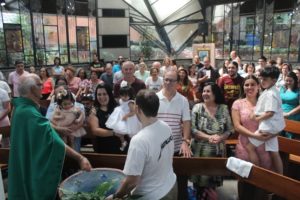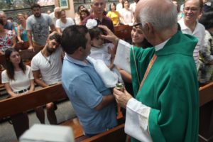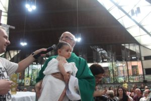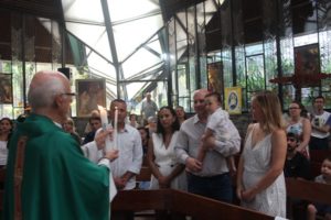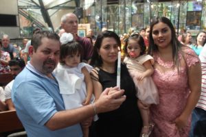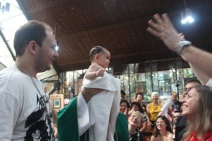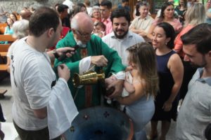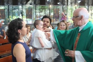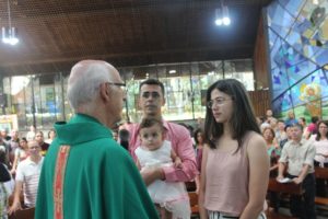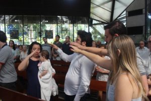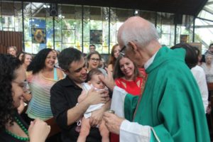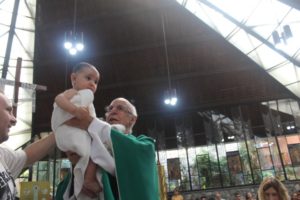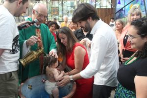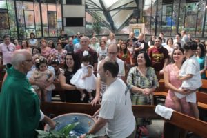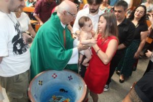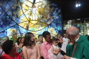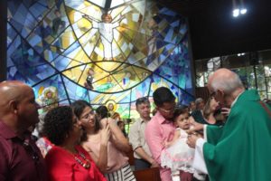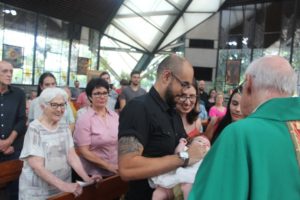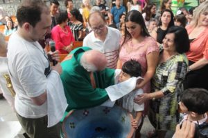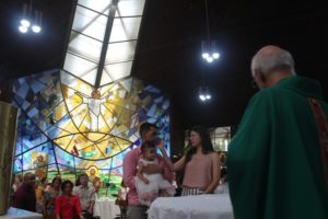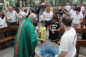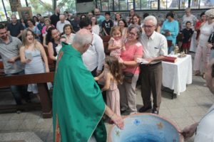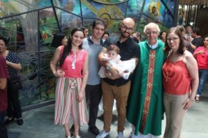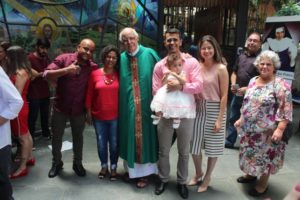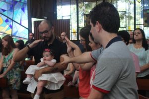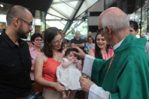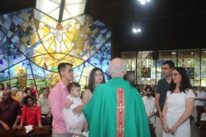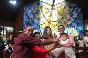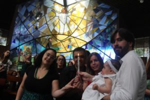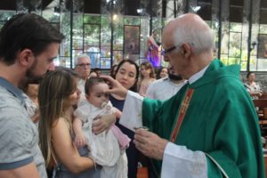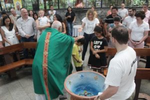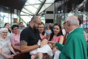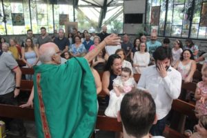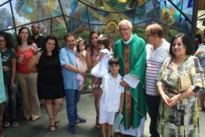 Neste domingo, 17/02/2020 – antes da missa das dez, na capela da Universidade São Judas Tadeu, mais 7 crianças foram batizadas na Comunidade São Miguel Arcanjo.