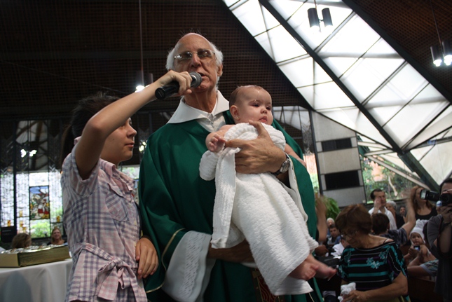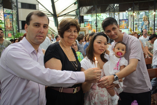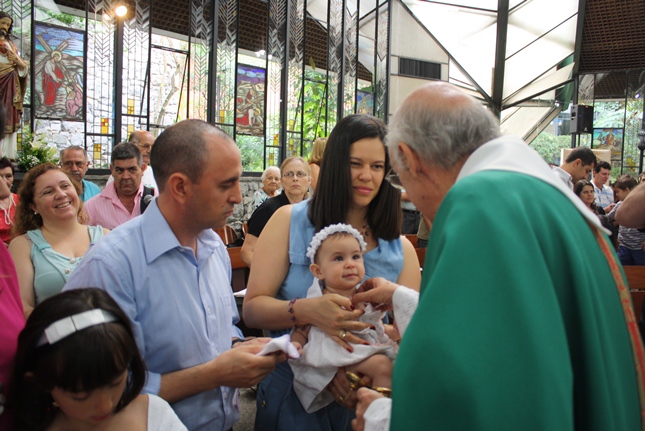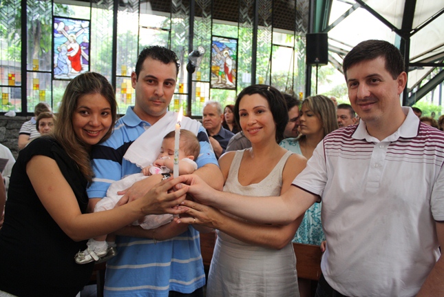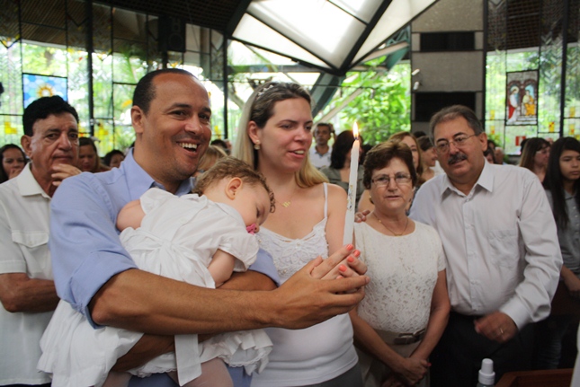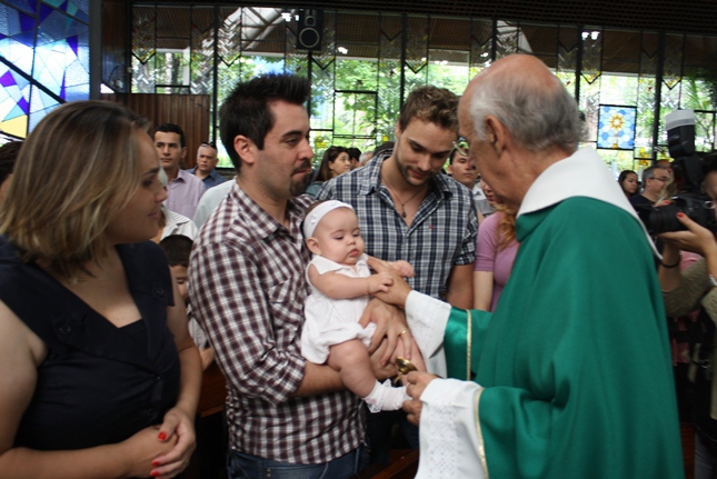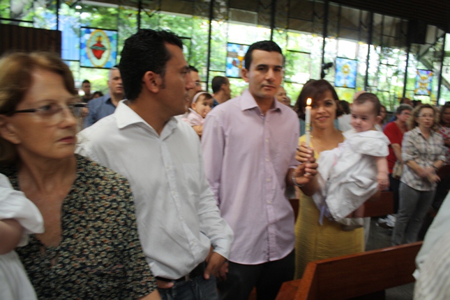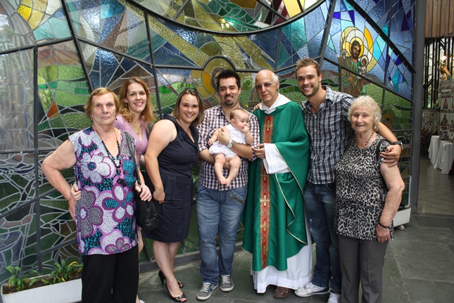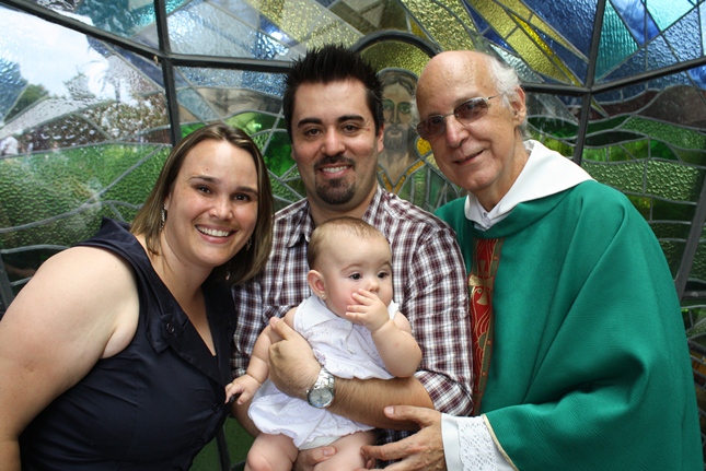 Com grande emoção assistimos a cerimônia do batizado de nossa amada netinha Nicole Aguilar Lutf ! Filha de meu filho Jorge Ricardo Lopes Lutf e de Fabiana Aguilar Lutf. Seus padrinhos foram, meu outro filho Edgard Roberto Lopes Lutf e sua esposa Rosane Mayordomo Lutf! Seu trabalho Padre, sempre diferenciado dos demais, nao só no batismo, mas tambem em todos os Setores onde o Senhor pratica arduamente o bem para beneficiar os desprotegidos e carentes é maravilhoso! Seu poder de Justiça Divina e de bondade é notável! Peço a Deus que o senhor seja auxiliado e reconhecido por “poderosos” aqui da terra, a fim de que possa continuar a sua incomparável Obra Cistã! Lamentamos a perda de sua cunhada Neide. Que o Senhor a tenha em seus braços. Aproveito para cumprimentar todas as crianças e seus parentes por um dos mais importantes eventos de suas vidas. Abraços, Dionir