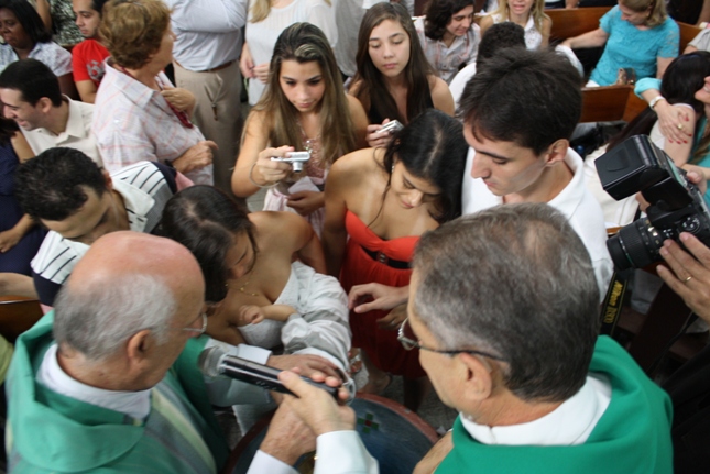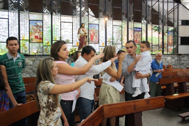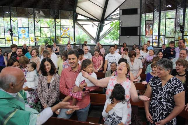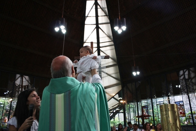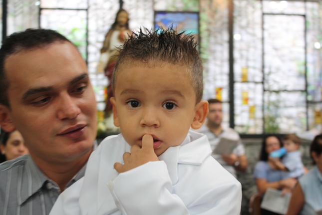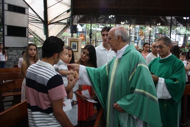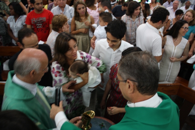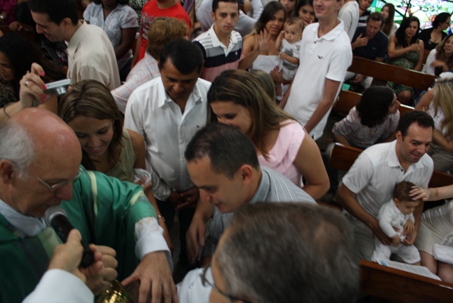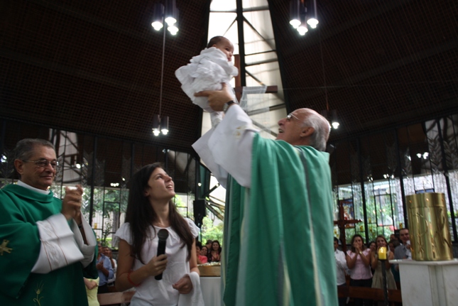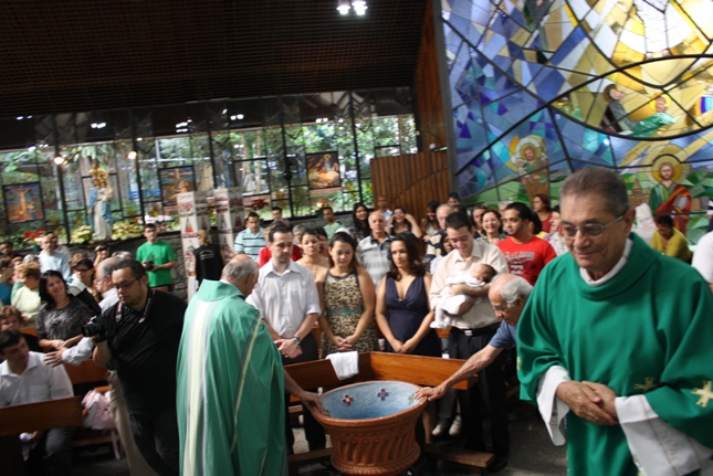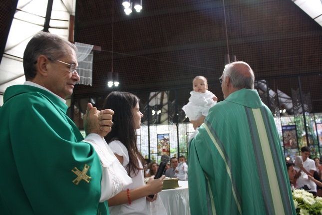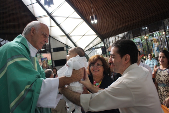 Domingo de muitas emoções. Quando o Evangelho nos coloca nas bodas de Cana, vemos o casamento de Jesus com a Comunidade. O casamento nos leva para a família e dela os filhos que hoje foram batizados, seis crianças pouco antes da missa das dez horas na Capela da Universidade São Judas Tadeu.