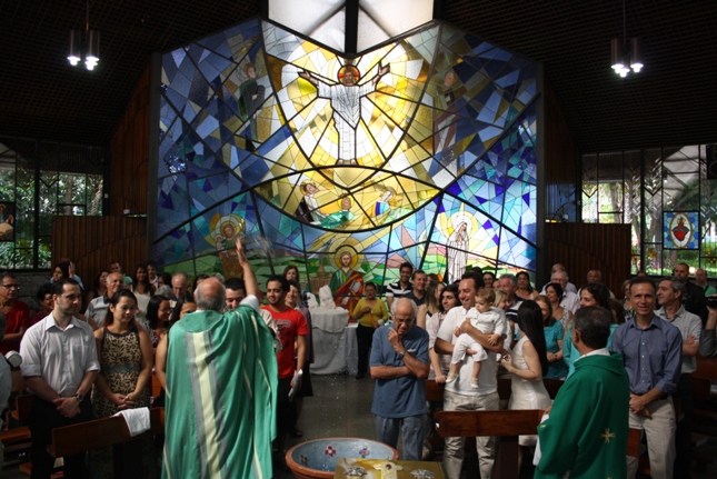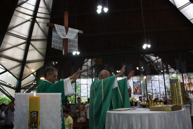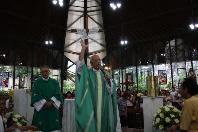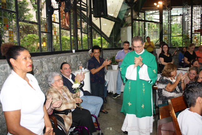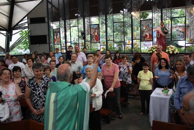 Uma celebração de muitas emoções. Além dos batizados, da legitimação do casamento, também a presença do jovem engenheiro Cristiano de Campinas (amigo do Pe Julio no twiter), do Jonata e outros acolhidos da Casa Nossa Senhora da Salete, das irmãs da Toca de Assis que igualmente acolhem mulheres sofredoras de rua, e não menos especial, do Diácono José Raimundo da Prelazia de São Félix do Araguaia. Neste domingo a celebração de 18 anos do falecimento do Prof. Alberto Mesquita, fundador com a Profª Alzira, do Colégio e da Universidade São Judas Tadeu.