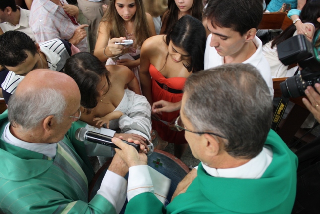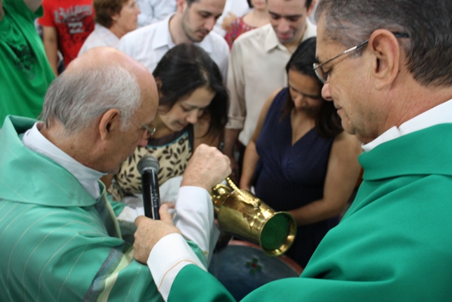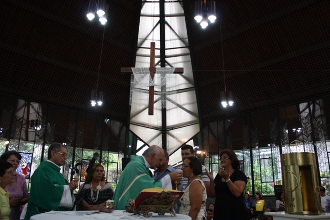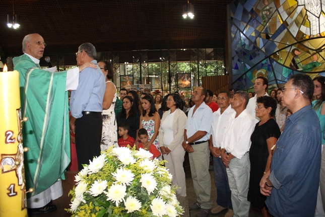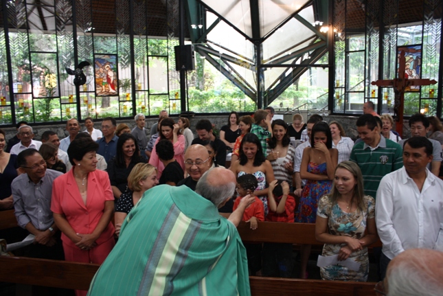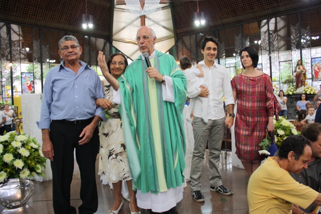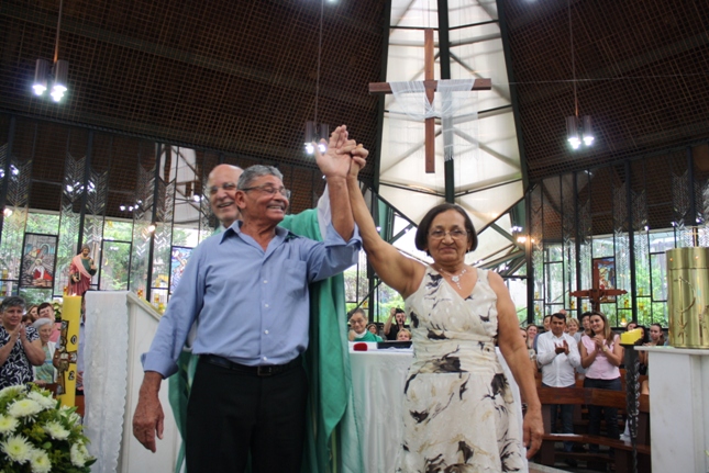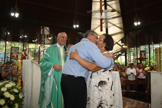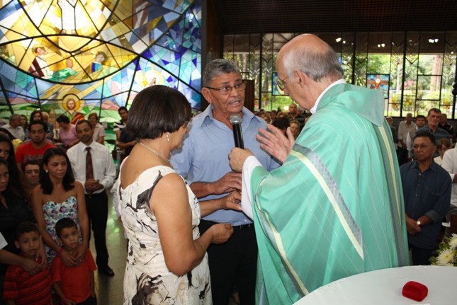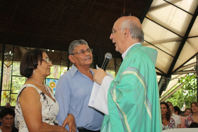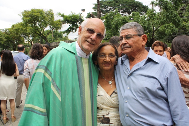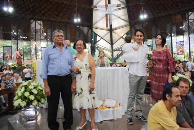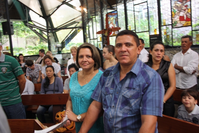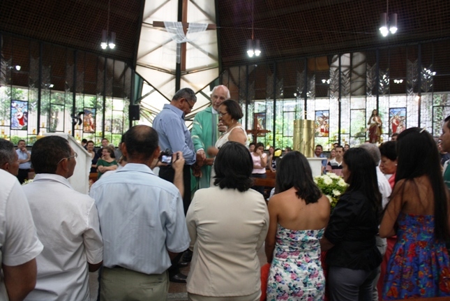 Também durante a missa tivemos a legitimação do casal de agricultores, Antonio Ferreira de Lima com 67 anos e da Jacir da Silva Lima (ela com 65 anos), casados no civil por 43 anos, que tinham a motivação maior de se receberem no sacramento para comungarem na sagrada Eucaristia. Casaram no religioso cercado dos filhos que moram aqui em São Paulo e dos netos e muitos amigos. Toda a lembrança de Palmeiras dos Índios de Alagoas.