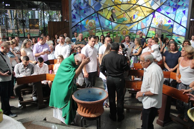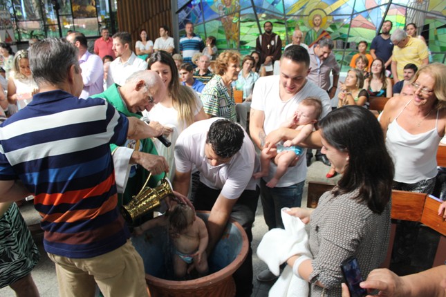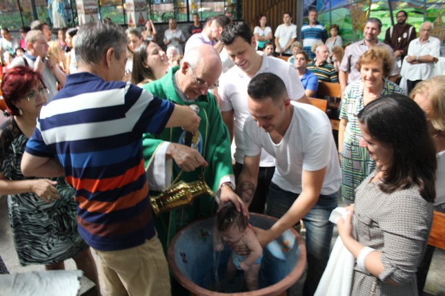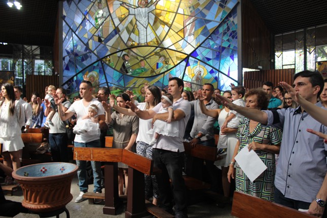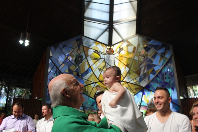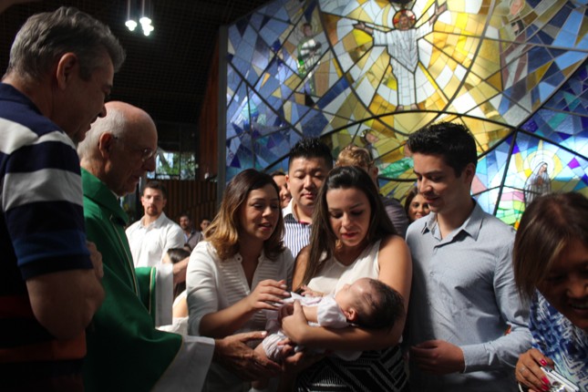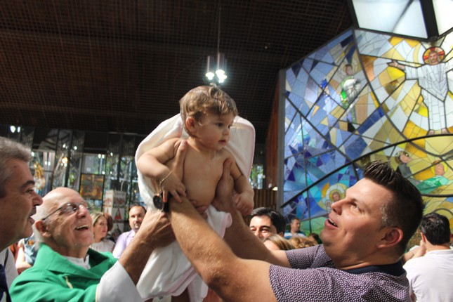 Janeiro de 2016, último domingo, mais 13 crianças receberam o sacramento do batismo na capela da Universidade São Judas Tadeu. A Comunidade São Miguel Arcanjo ficou maior.