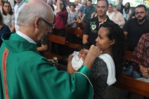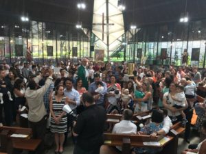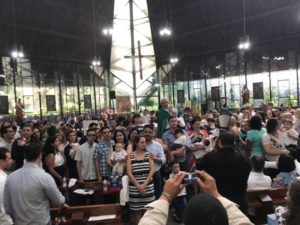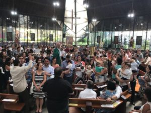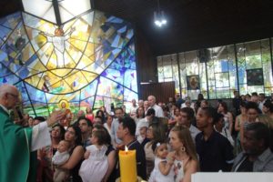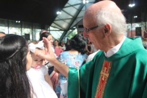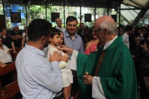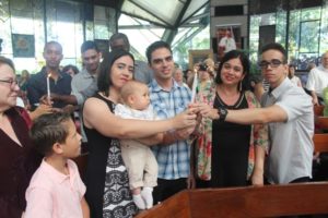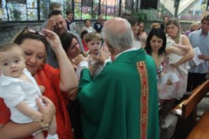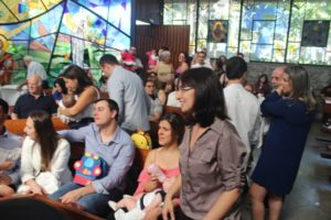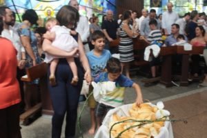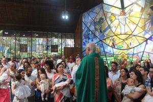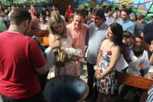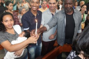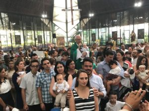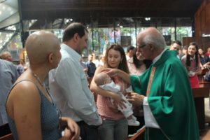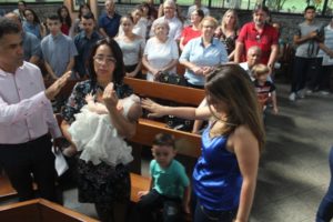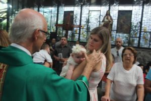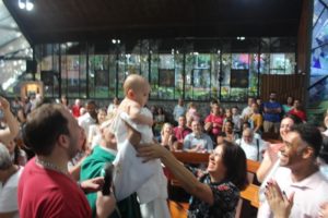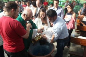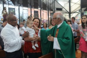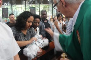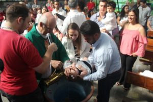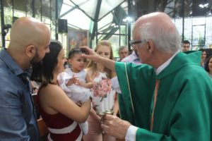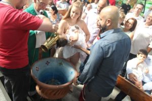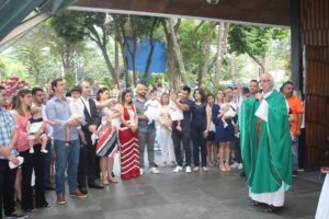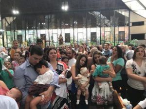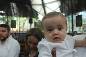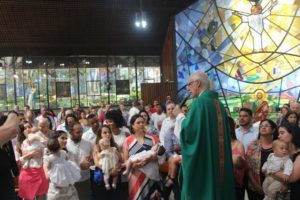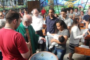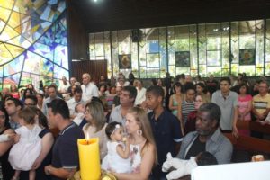 Neste domingo, 28/01/18 na capela da Universidade São Judas Tadeu, mais 17 crianças foram batizadas na Comunidade São Miguel Arcanjo. A celebração do batismo, como sempre começou as 9h30.