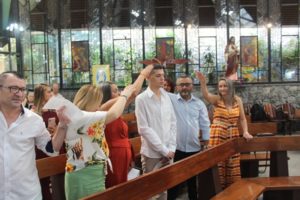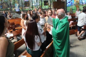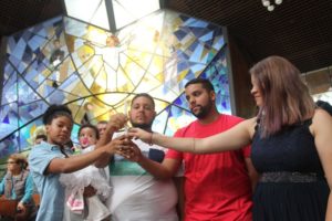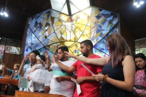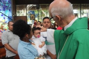 Domingo, 24/01/2020 na capela da Universidade São Judas Tadeu, mais 7 crianças e jovens da Comunidade São Miguel Arcanjo foram batizados.