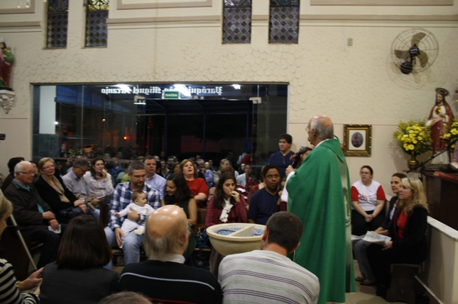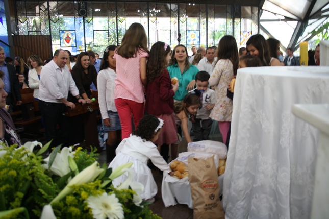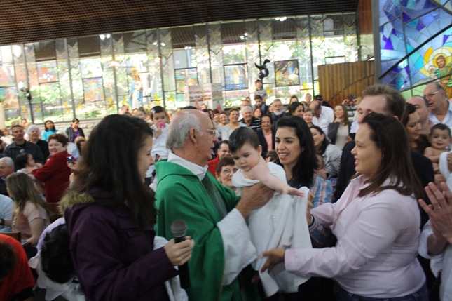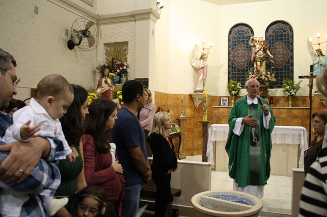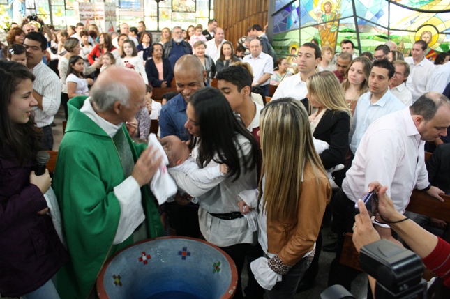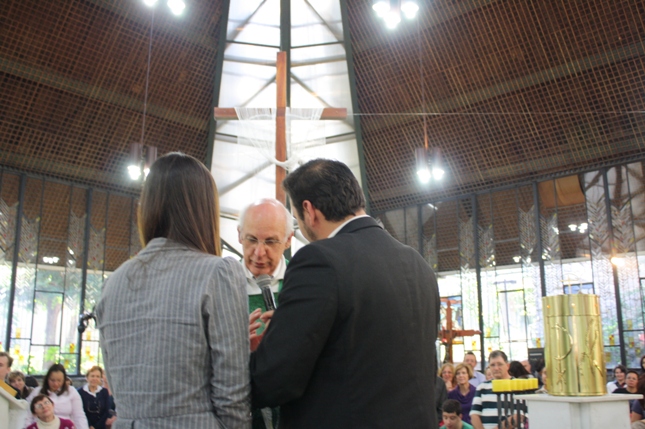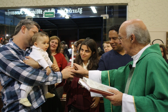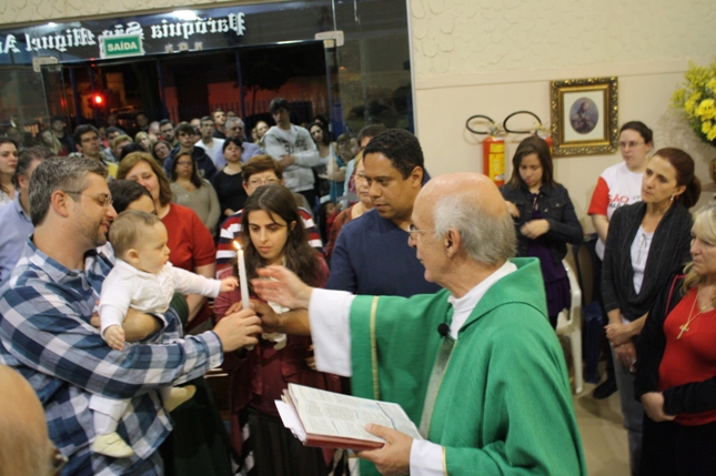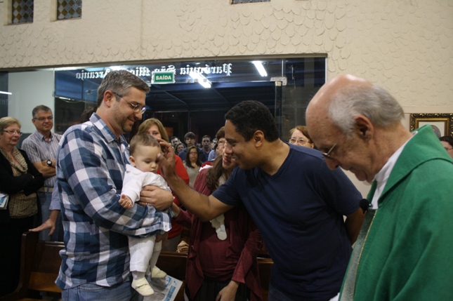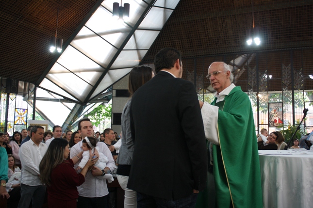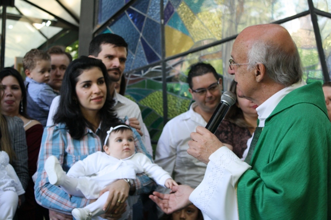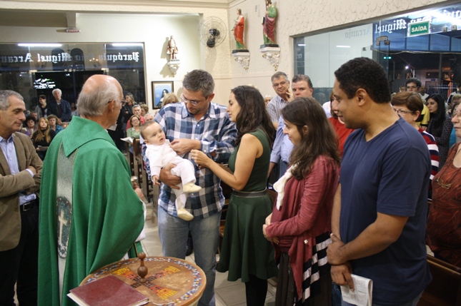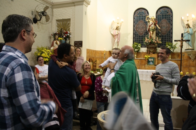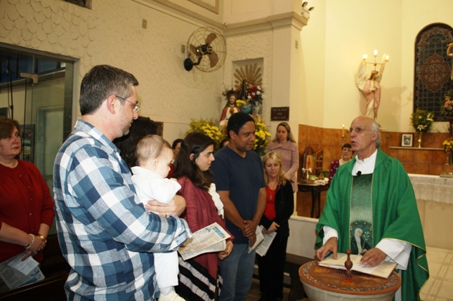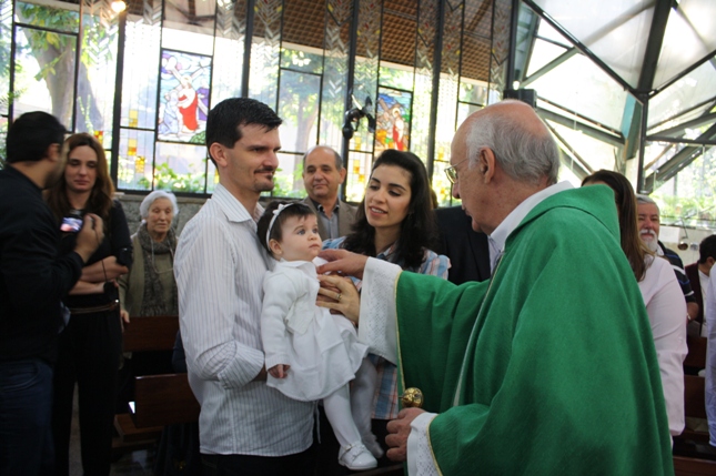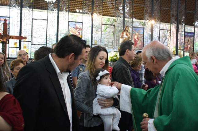 O Pe Julio suscitou a todos os pais e padrinhos a de fato tratarem a educação de seus filhos e afilhados na fé. Durante a Celebração Eucarística, ocorreu o casamento do Thiago e da Maura, pais da Isabela Zampieri Arias.