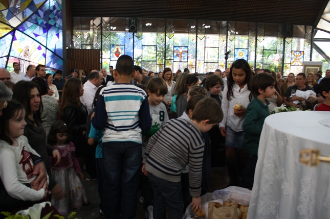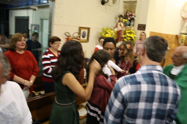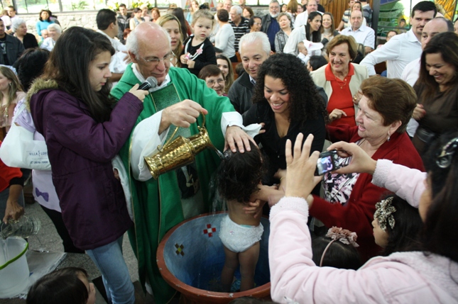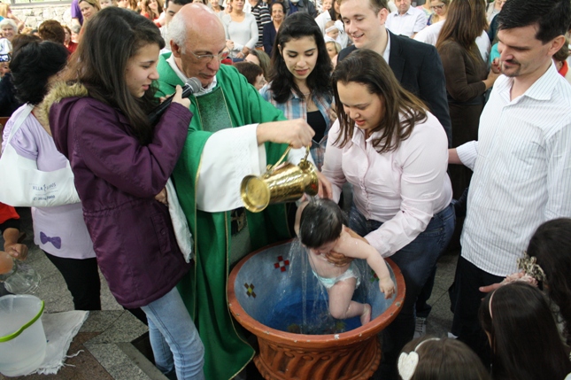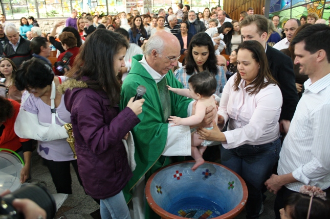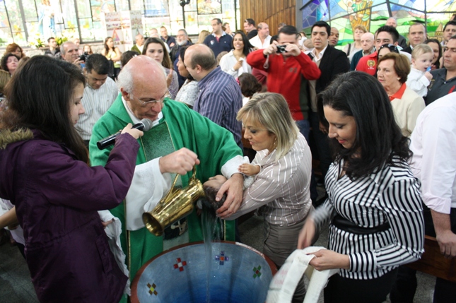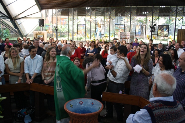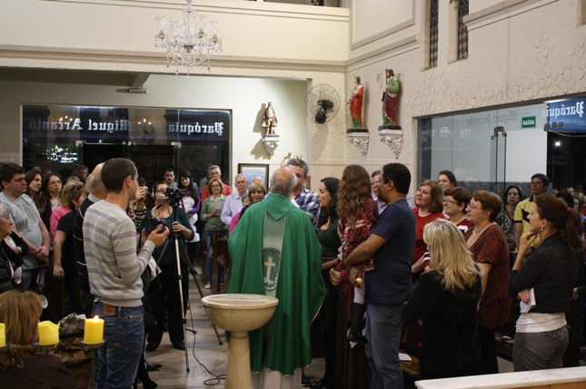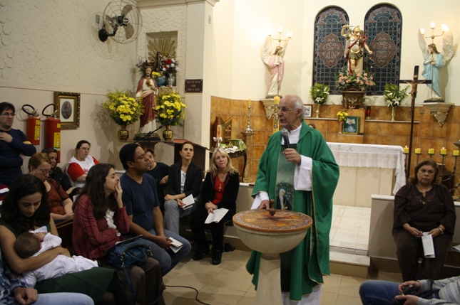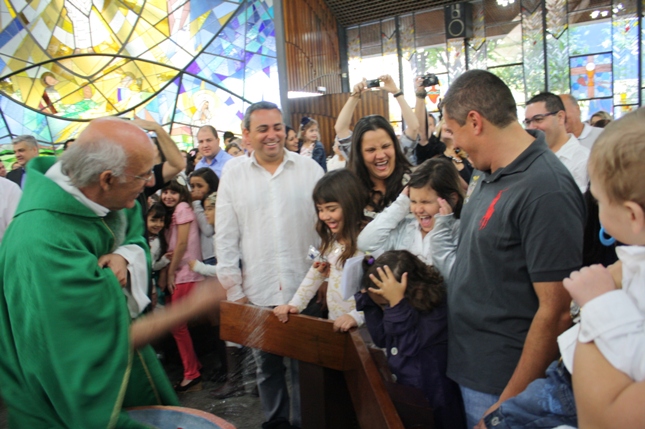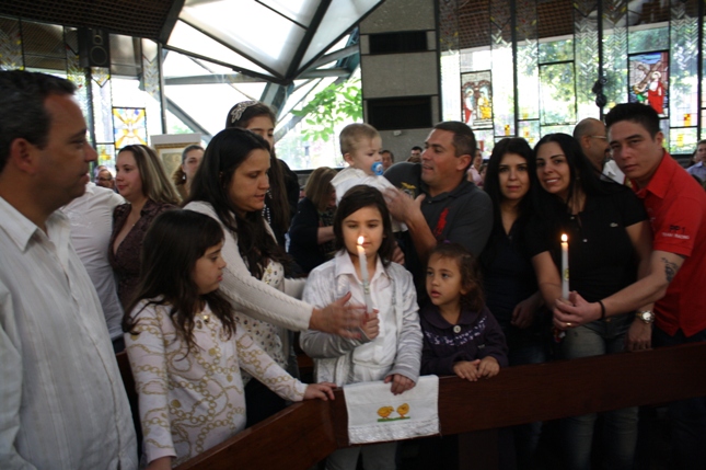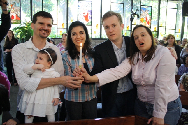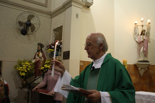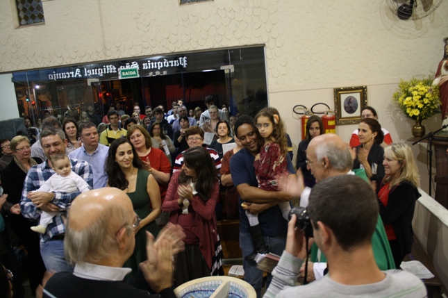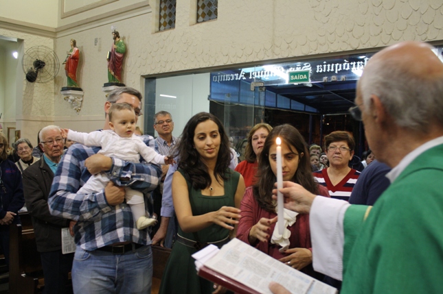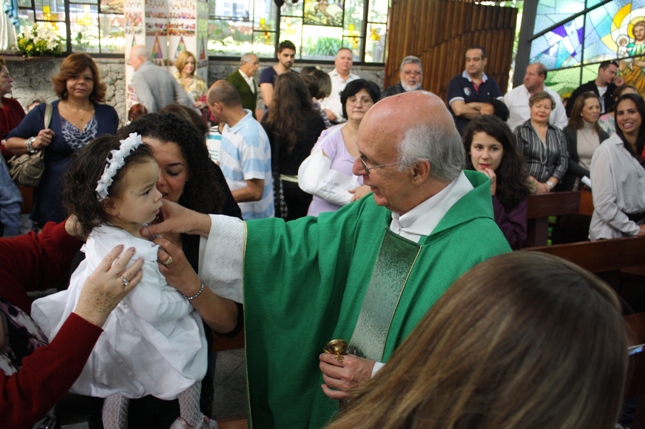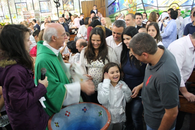 O Pe Julio suscitou a todos os pais e padrinhos a de fato tratarem a educação de seus filhos e afilhados na fé. Durante a Celebração Eucarística, ocorreu o casamento do Thiago e da Maura, pais da Isabela Zampieri Arias.