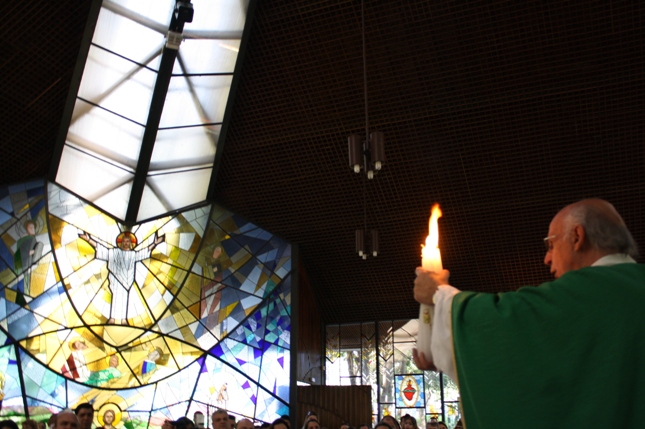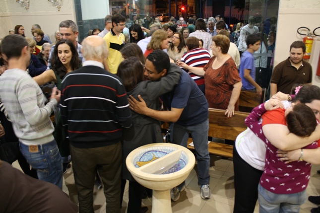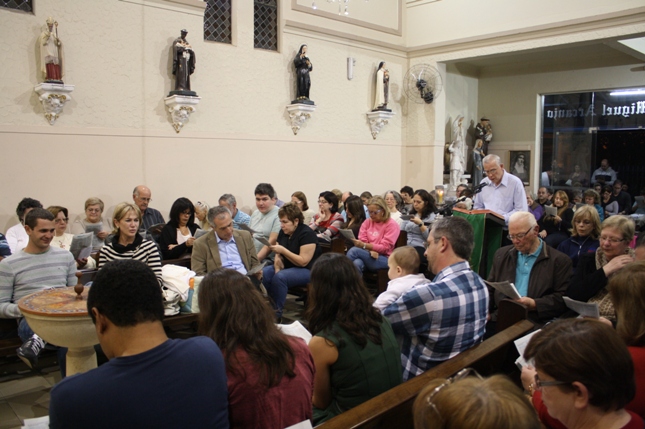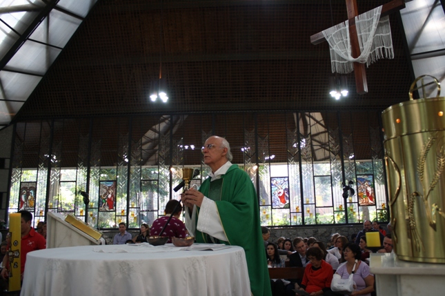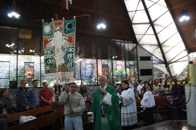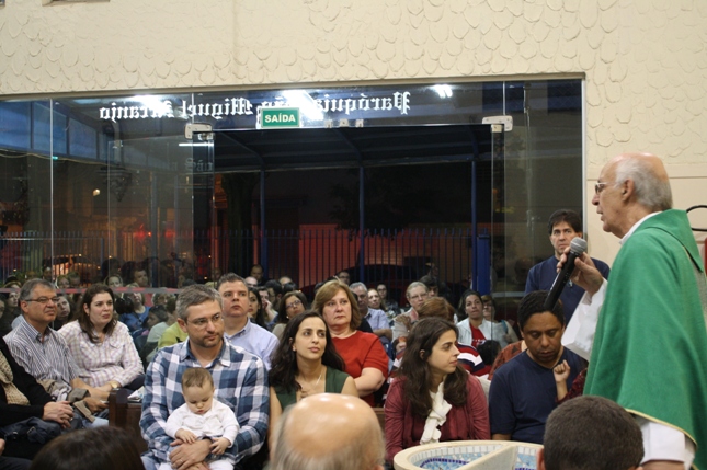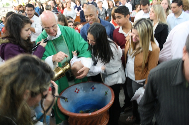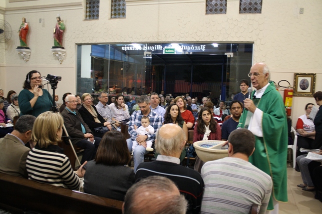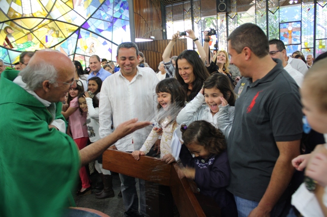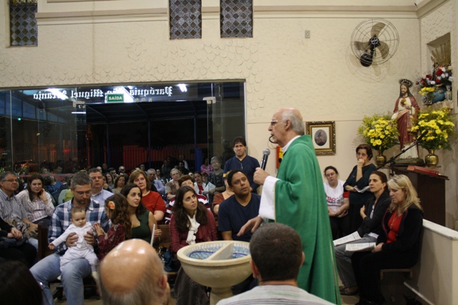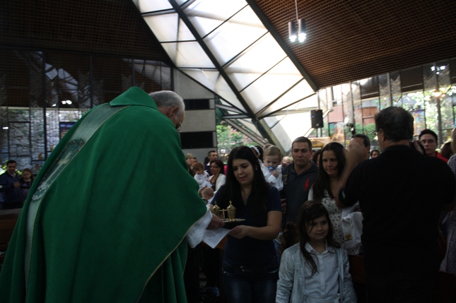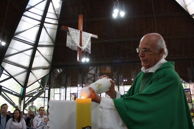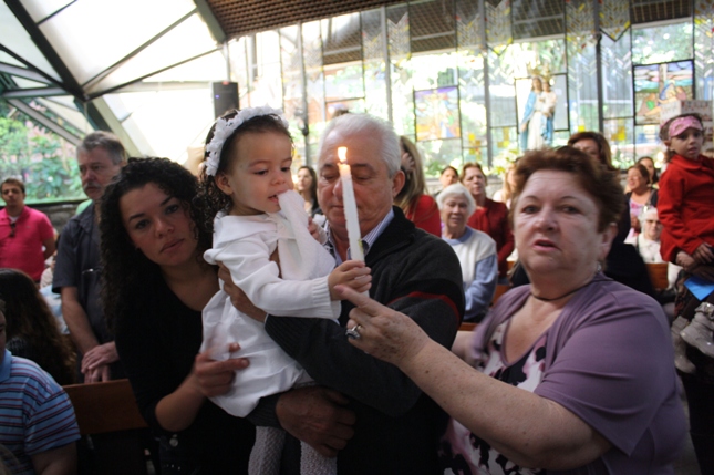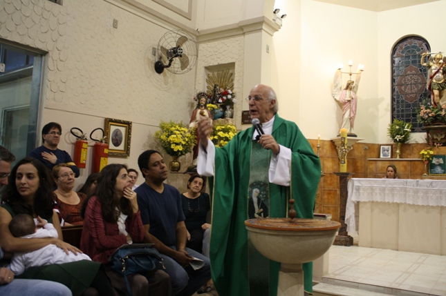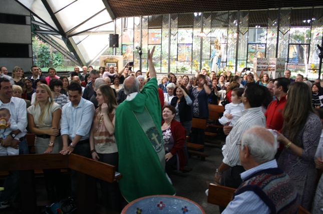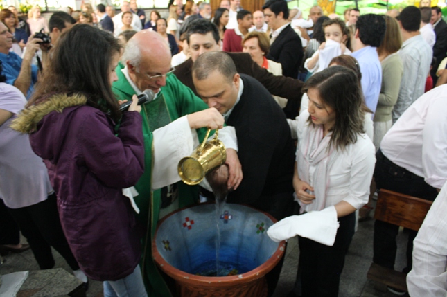 O Pe Julio suscitou a todos os pais e padrinhos a de fato tratarem a educação de seus filhos e afilhados na fé. Durante a Celebração Eucarística, ocorreu o casamento do Thiago e da Maura, pais da Isabela Zampieri Arias.