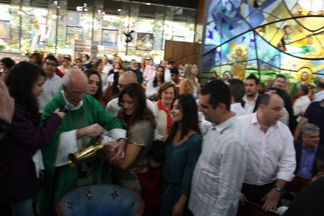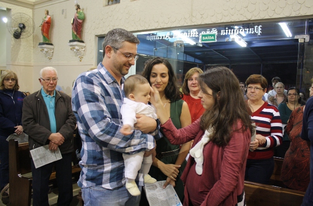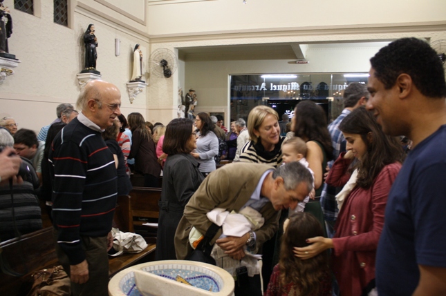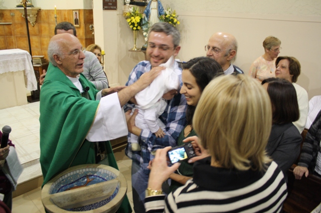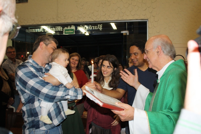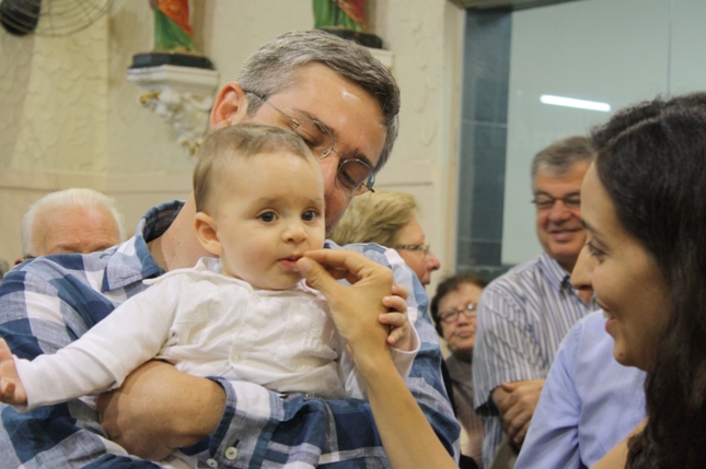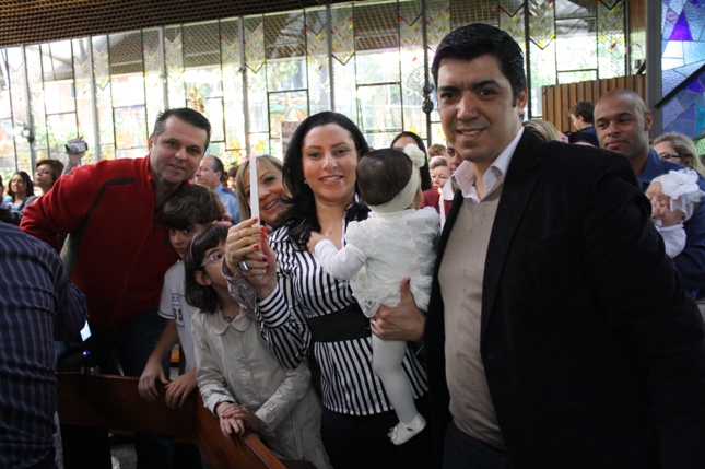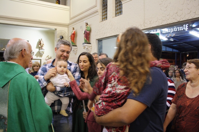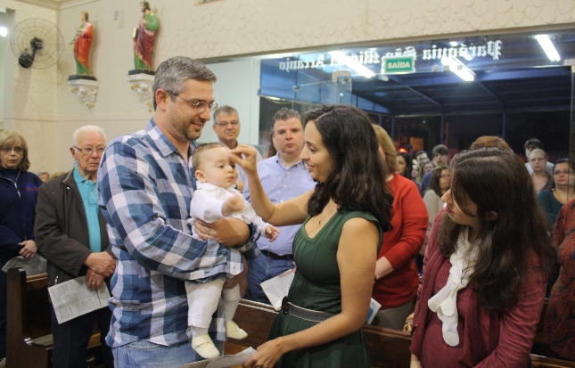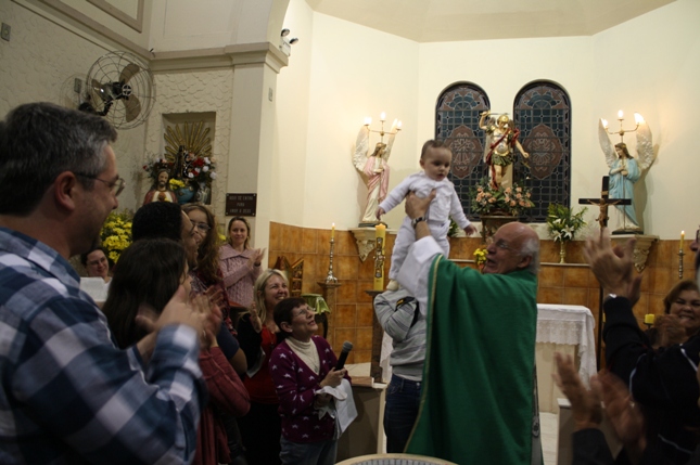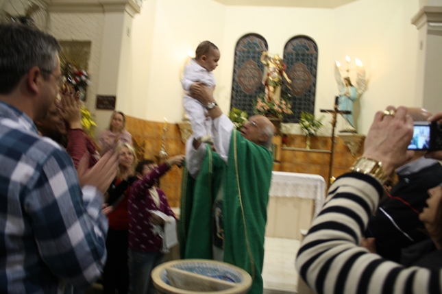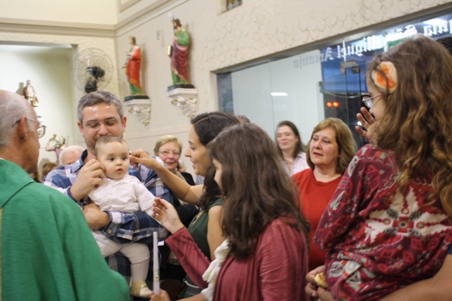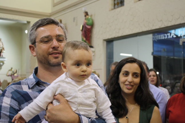 Na missa das 18hs, na Paróquia São Miguel Arcanjo, o batizado do Antonio Petta Massuda.