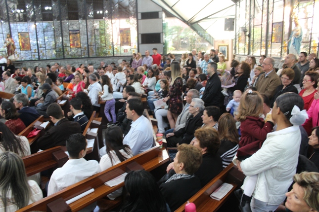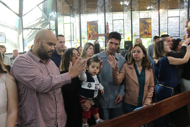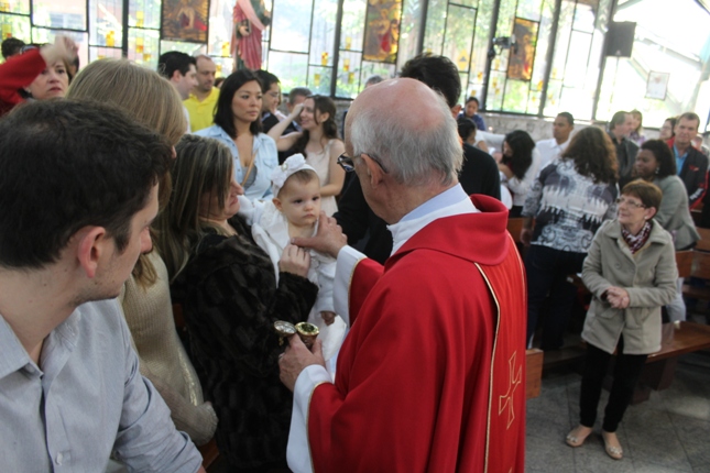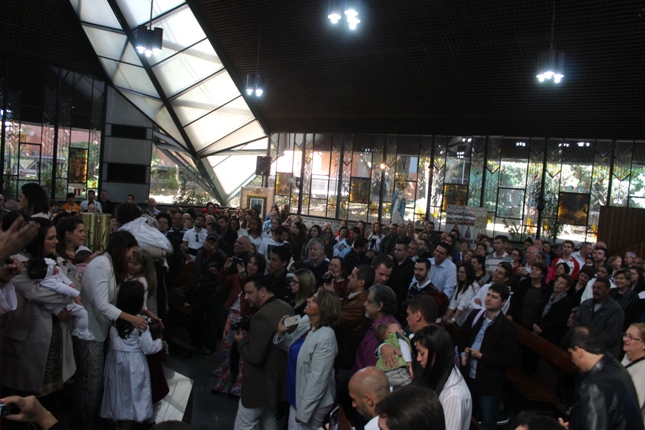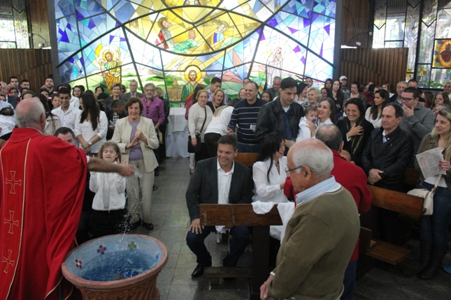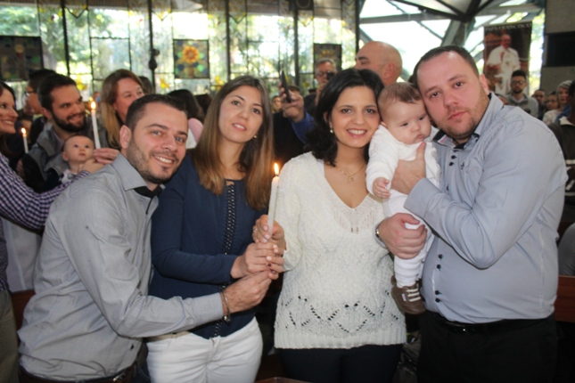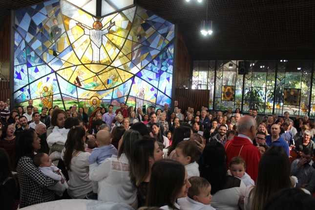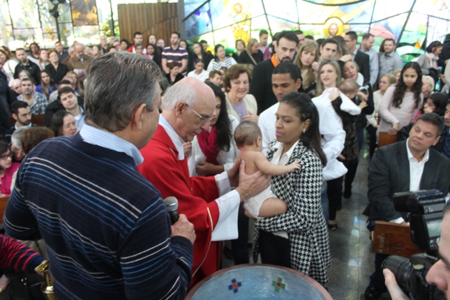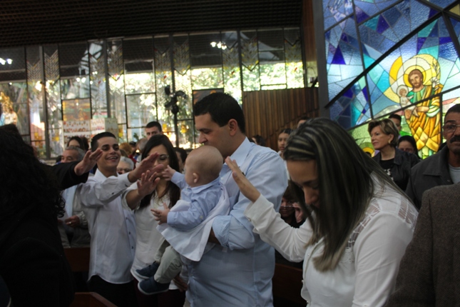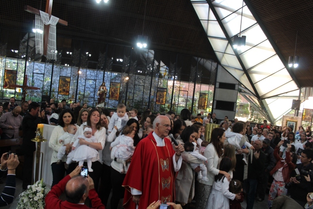 Na solenidade de São Pedro e São Paulo Apóstolos, também o dia do Papa, neste domingo 28/06/15, mais 22 crianças foram batizadas na Comunidade São Miguel Arcanjo. A Capela São Judas ficou lotada, com o batizado começando às 9h30 e na sequência a celebração eucarística.