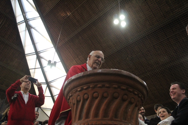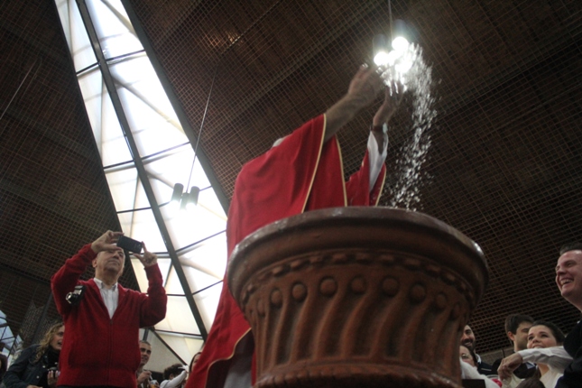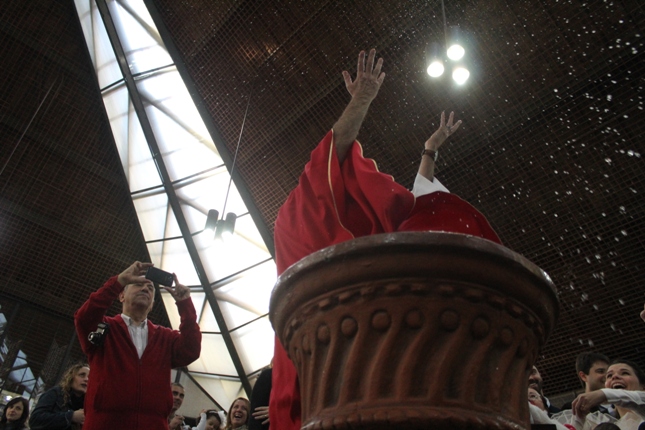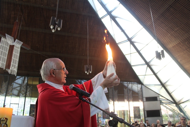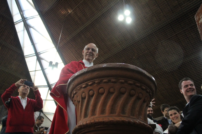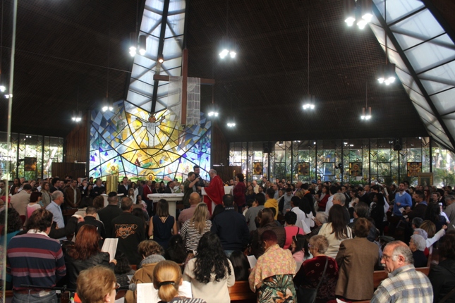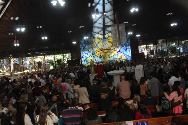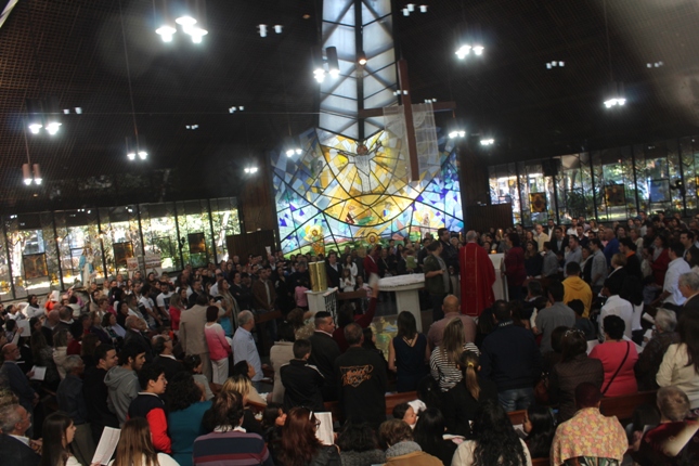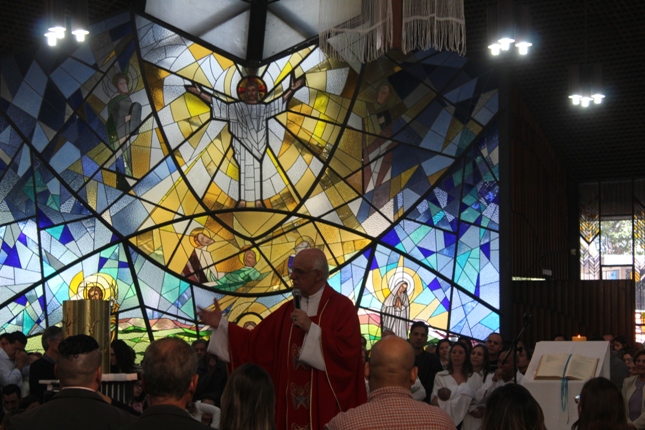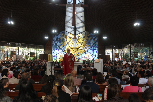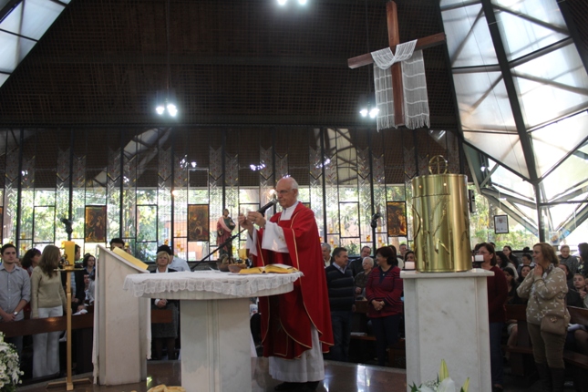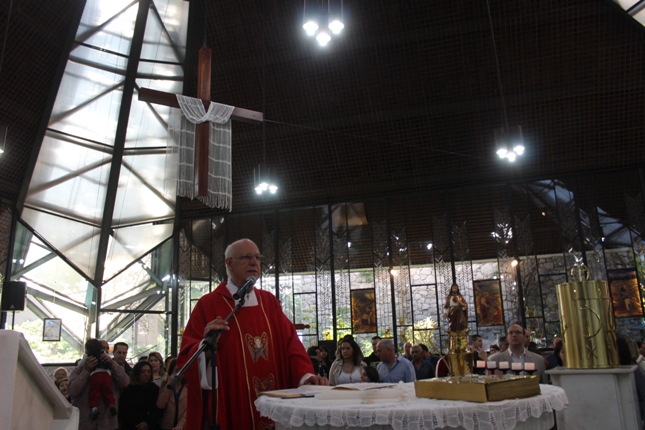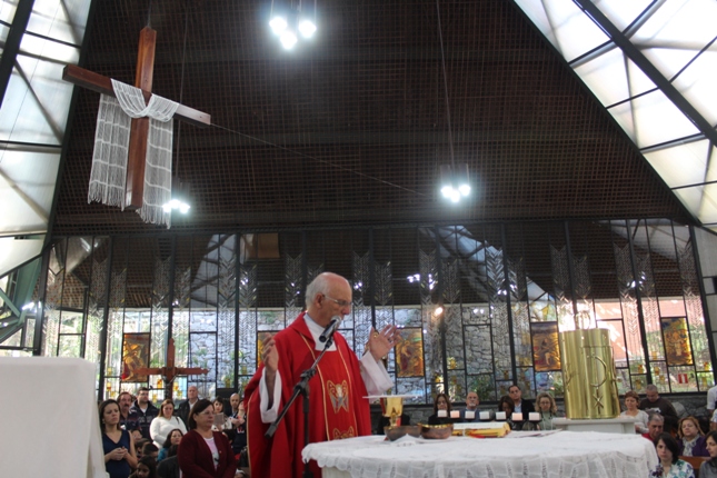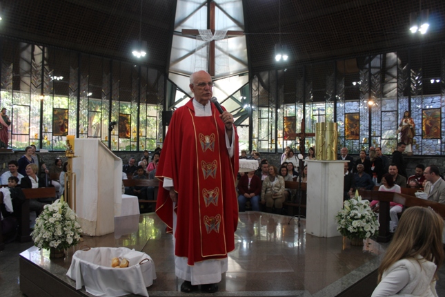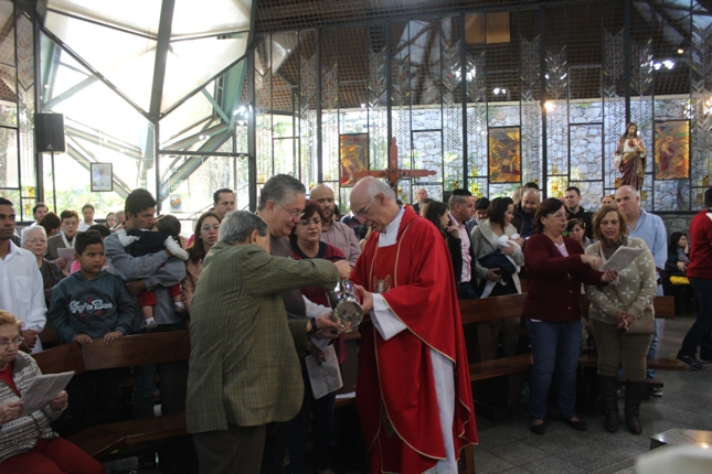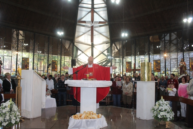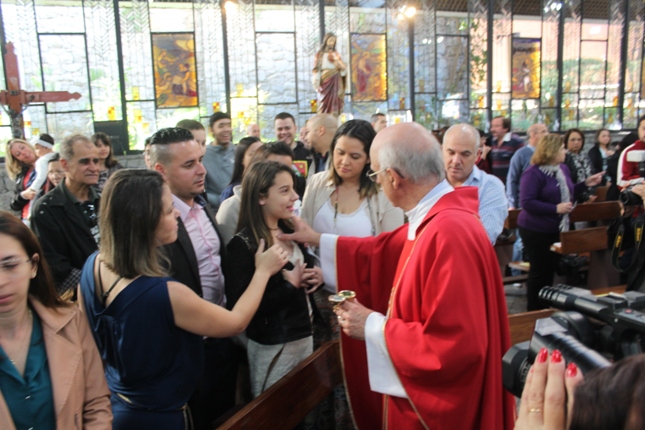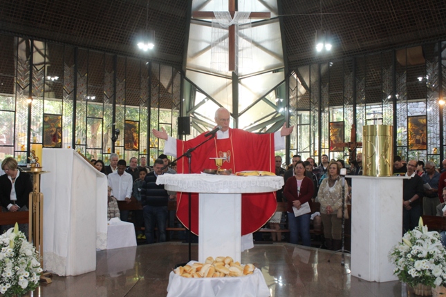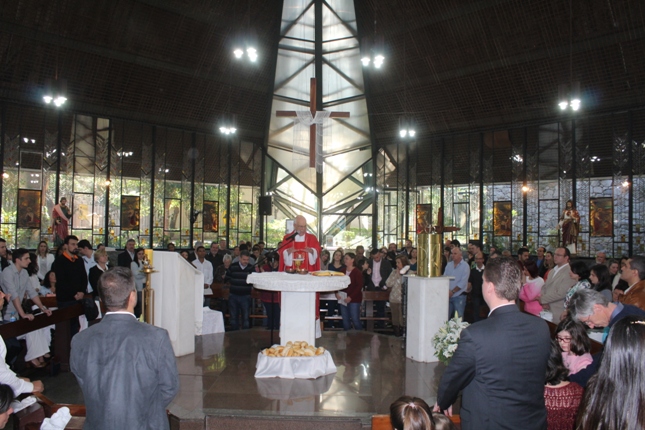 O Evangelho proclamado na missa (Mt 16,13-19): Naquele tempo, Jesus foi à região de Cesaréia de Filipe e ali perguntou aos seus discípulos: “Quem dizem os homens ser o Filho do Homem?” Eles responderam: “Alguns dizem que é João Batista; outros que é Elias; outros ainda, que é Jeremias ou algum dos profetas”. Então Jesus lhes perguntou: “E vós, quem dizeis que eu sou?” Simão Pedro respondeu: “Tu és o Messias, o Filho do Deus vivo”. Respondendo, Jesus lhe disse: “Feliz és tu, Simão, filho de Jonas, porque não foi um ser humano que te revelou isso, mas o meu Pai que está no céu. Por isso eu te digo que tu és Pedro, e sobre esta pedra construirei a minha Igreja, e o poder do inferno nunca poderá vencê-la. Eu te darei as chaves do Reino dos Céus: tudo o que tu ligares na terra será ligado nos céus; tudo o que tu desligares na terra será desligado nos céus”.