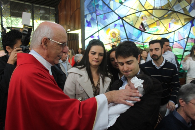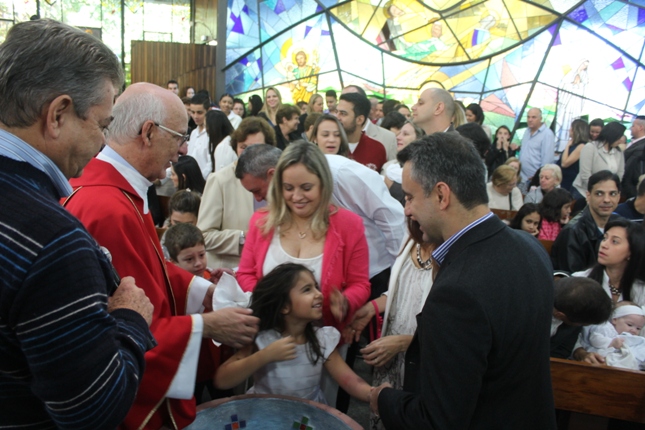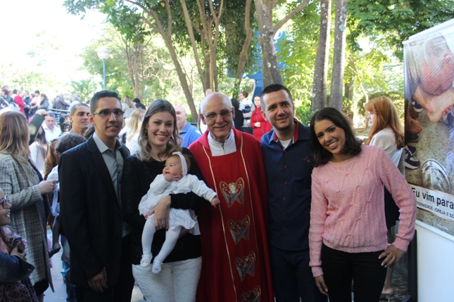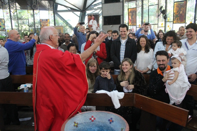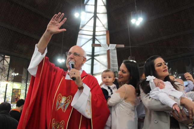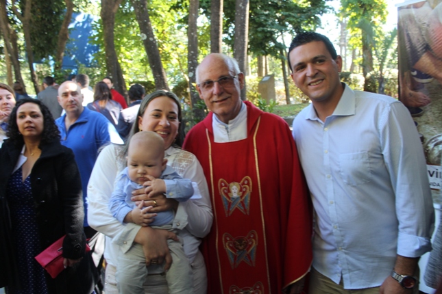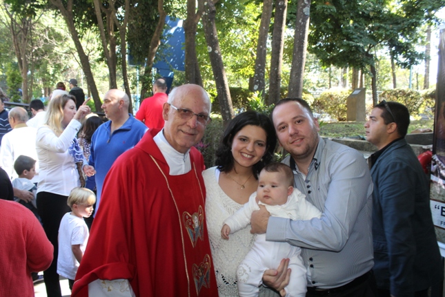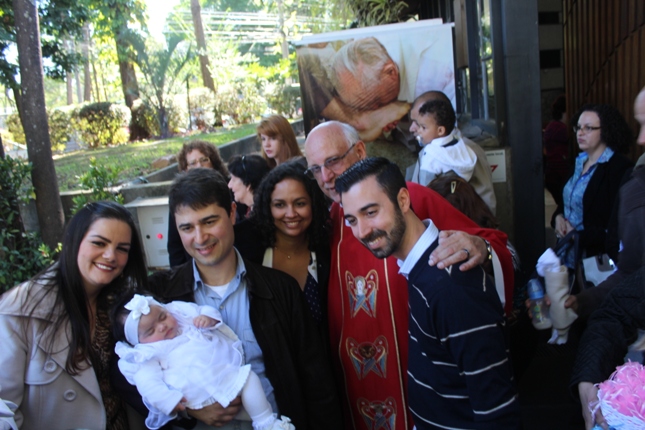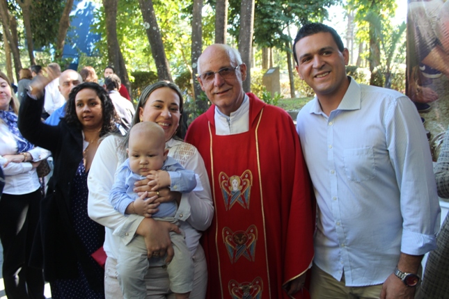 O Pe Julio muito feliz com os batizados e já comemorando seus 30 anos na Paróquia São Miguel Arcanjo.