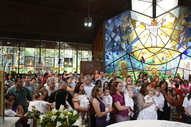 Batizadas mais 20 crianças na Comunidade São Miguel Arcanjo. A Capela São Judas Tadeu estava completamente lotada. O primeiro domingo do Advento, sol alegria e a Laura muito feliz, até com familiares e amigos com camisetas personalizadas, que traziam a seguinte mensagem: