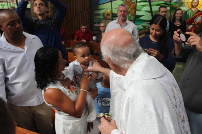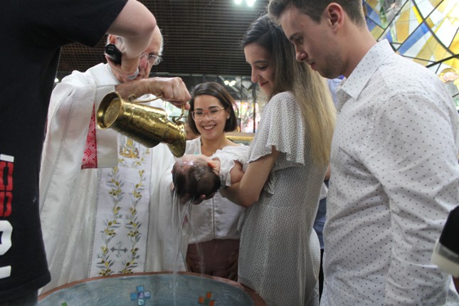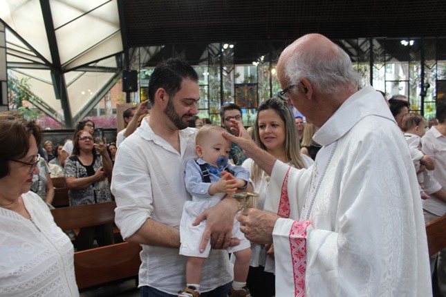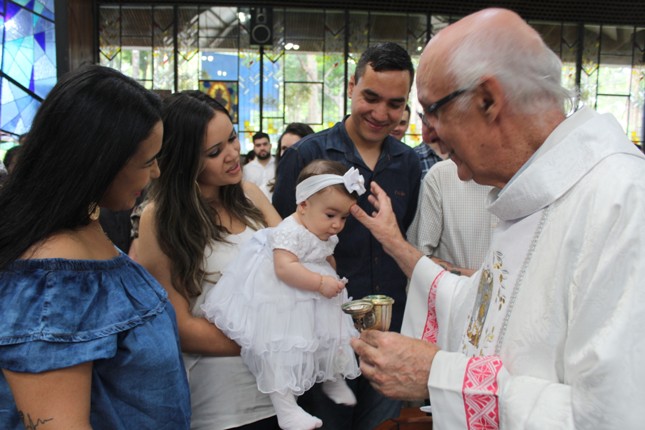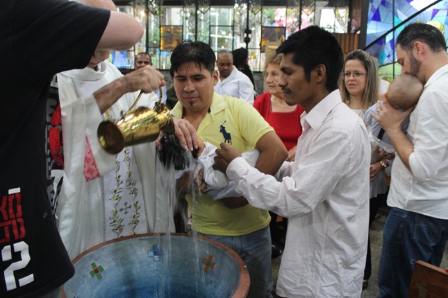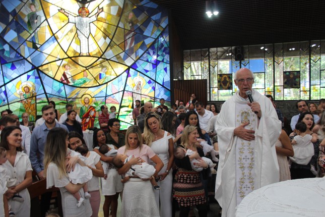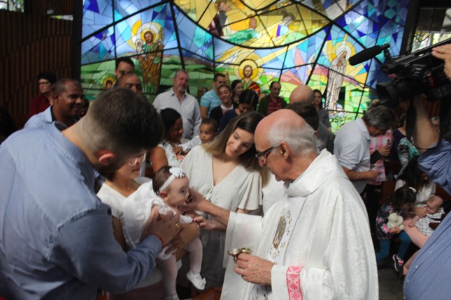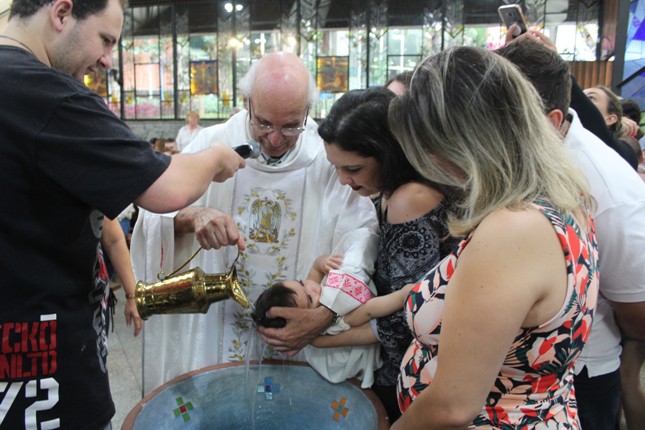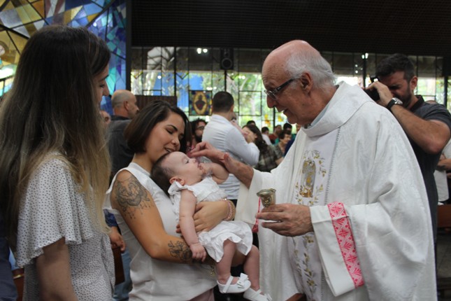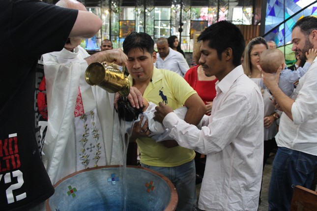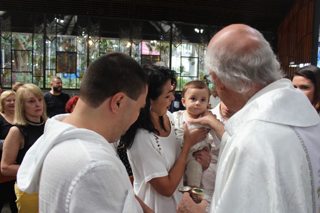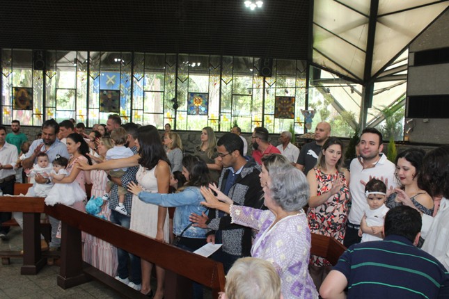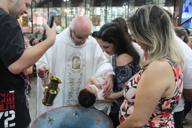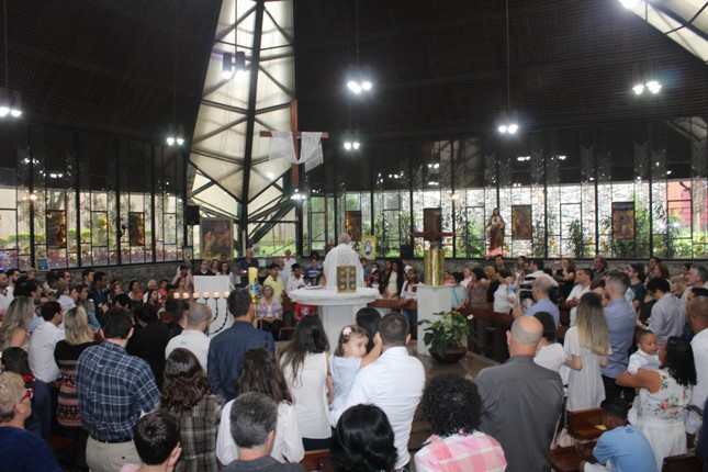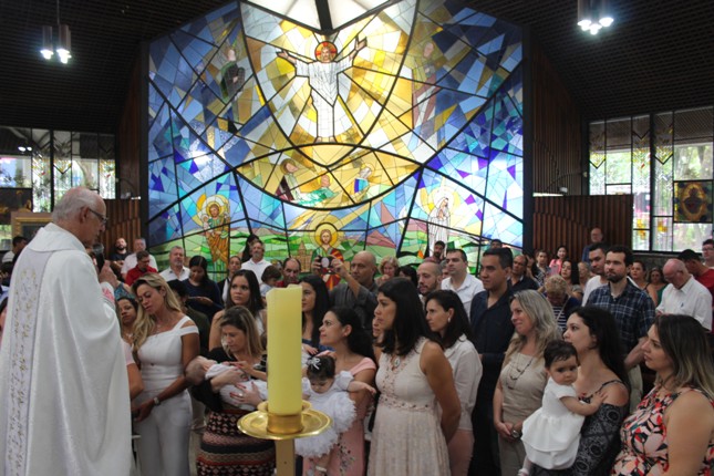 Receberam o sacramento do batismo o Breno, Eileen, Enrico, Lara, Luan, Lucas, Mabel, Marina Meneghini, Marina Rubota, Michele, Pedro e Theo.