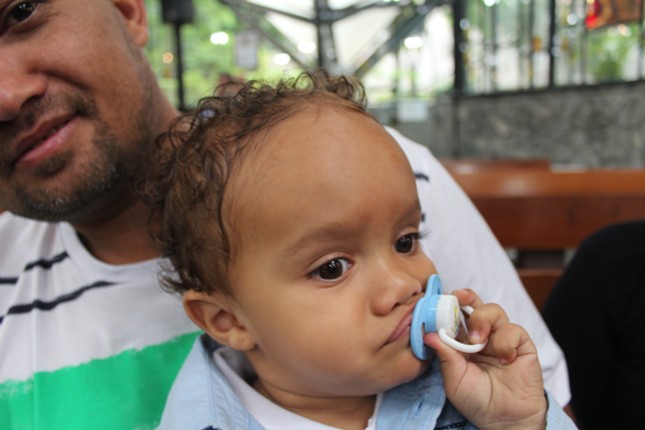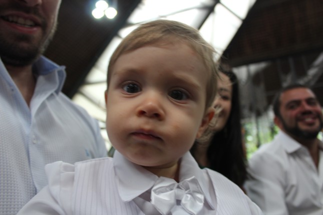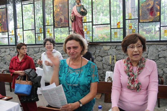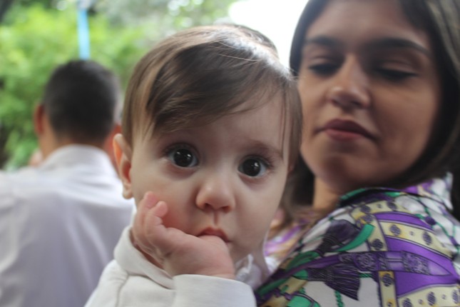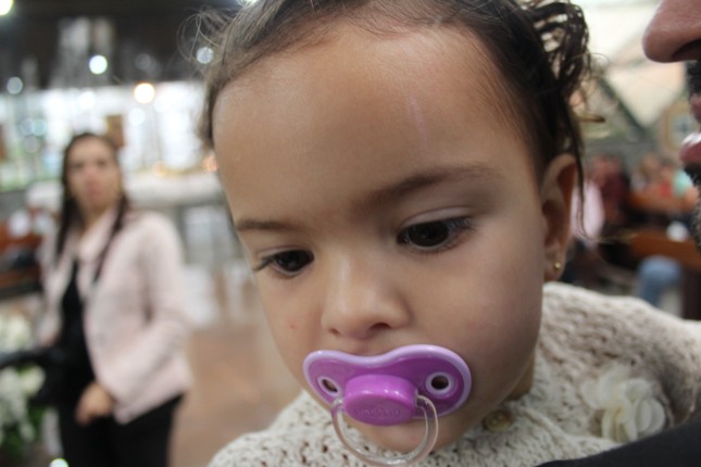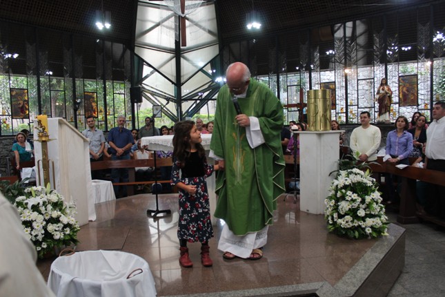 No final da missa foi rezada a Ave Maria pelas crianças batizadas. Aí veio a Manoela, menina que rezando emocionou o Pe Júlio e a todos que estavam na Capela.