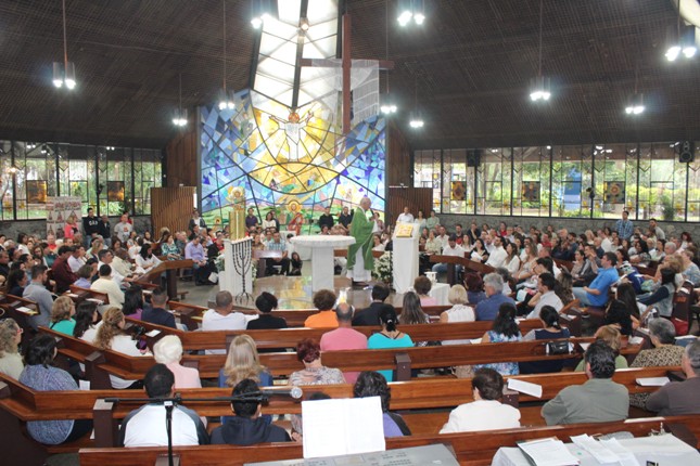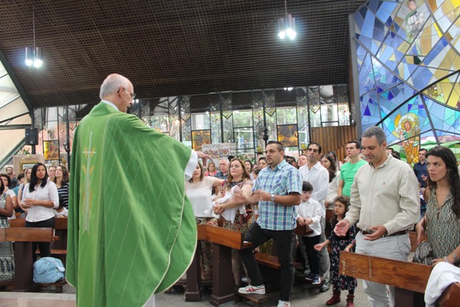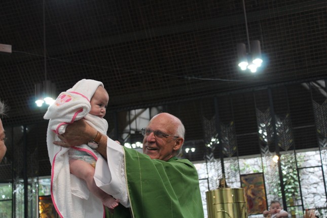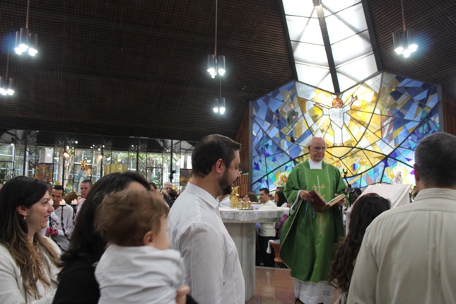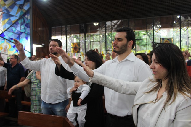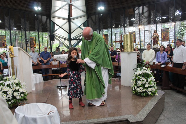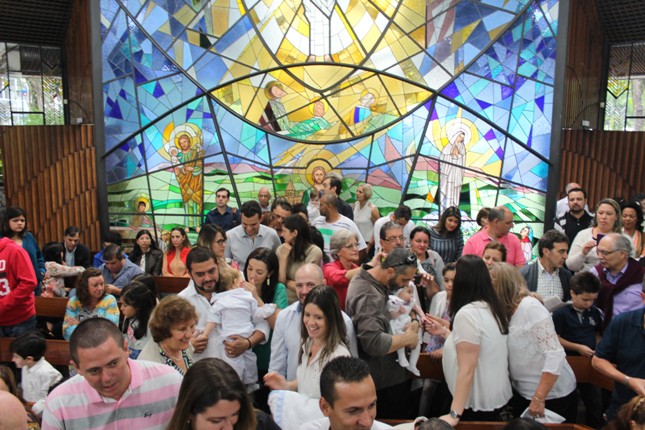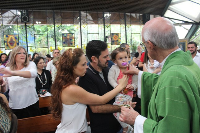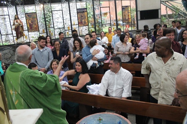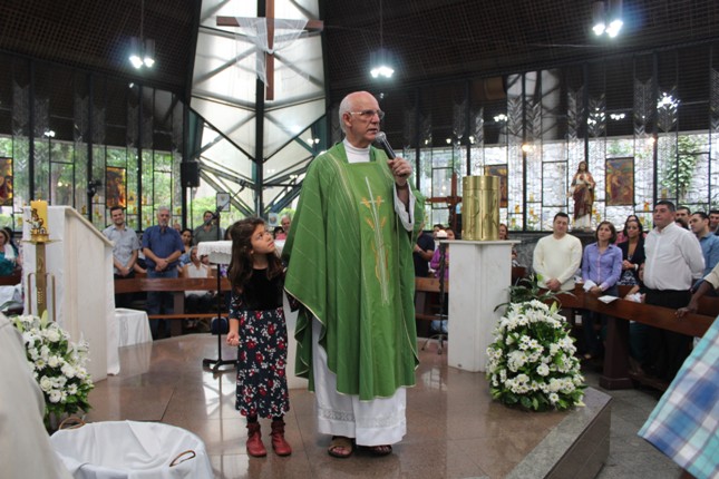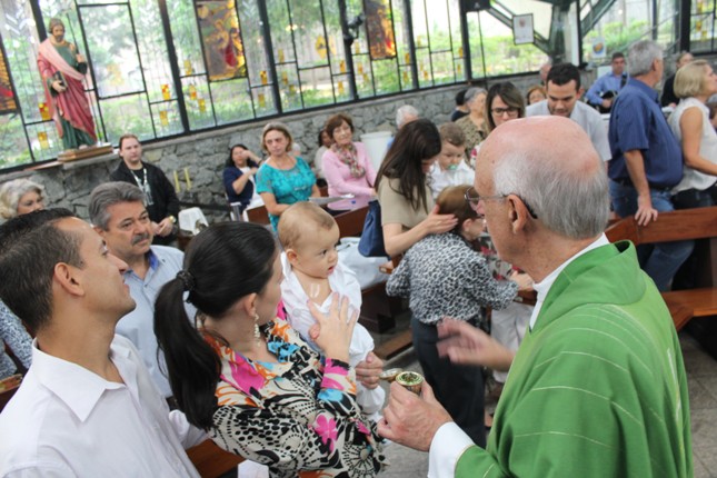 A menina que reza emocionou a todos. Na celebração do batismo neste mês de outubro muitas crianças receberam esse maravilhoso sacramento. Comunidade São Miguel Arcanjo ficando cada vez maior. Capela universitária São Judas Tadeu lotada.