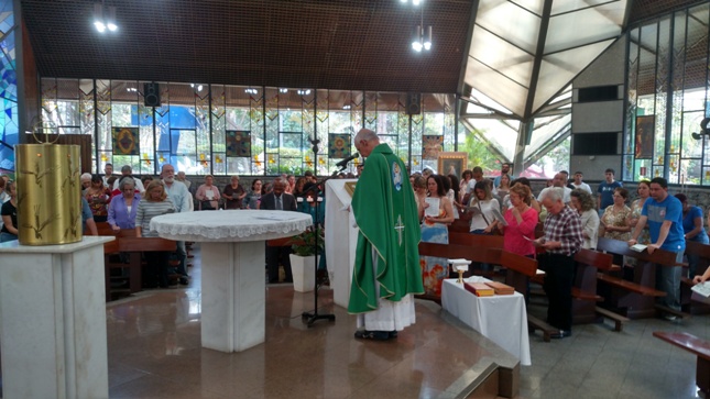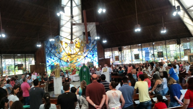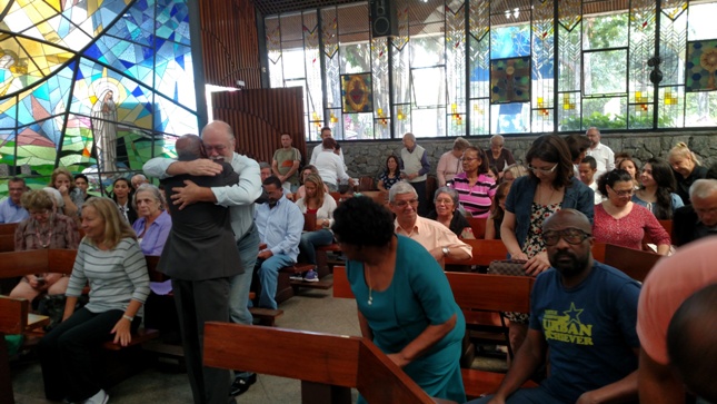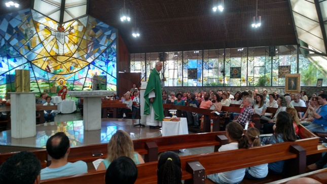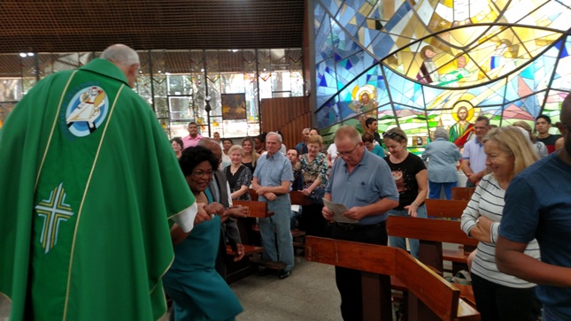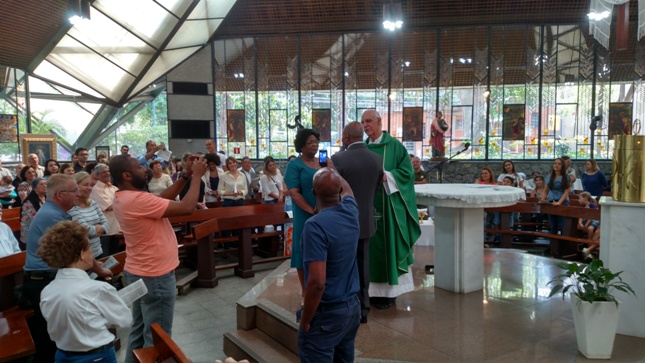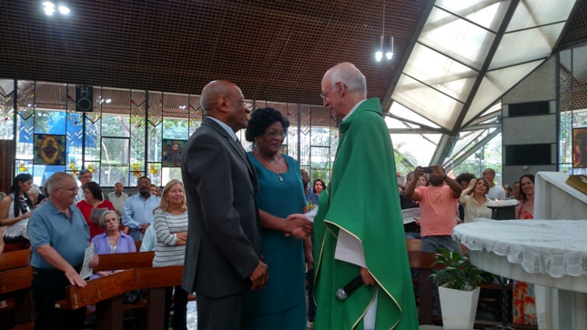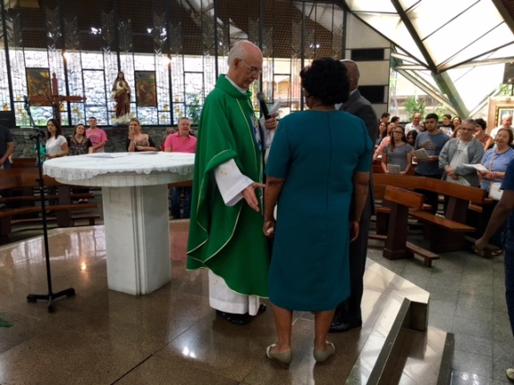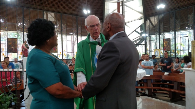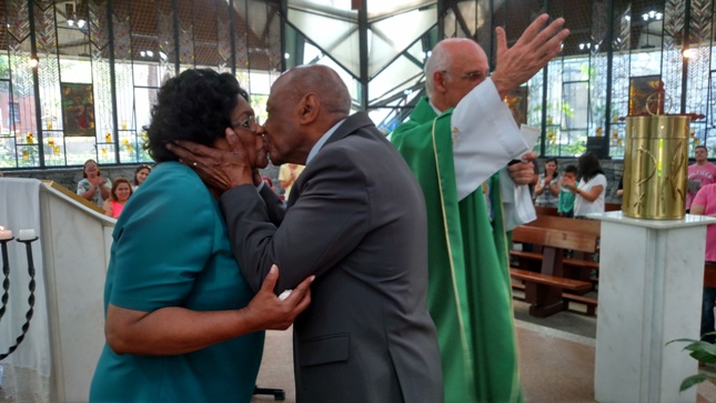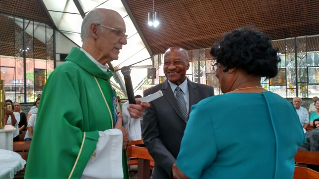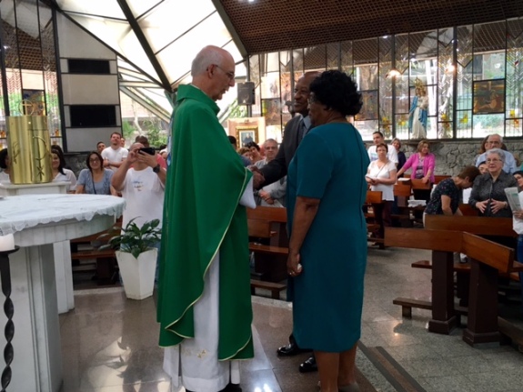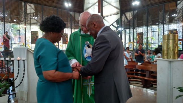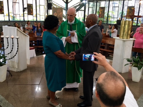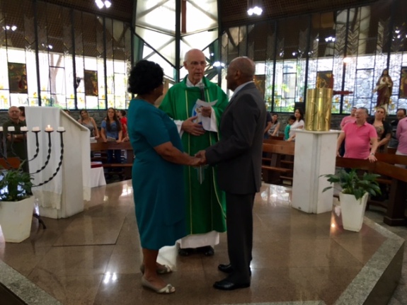 No último domingo, 18/09/16 na missa das dez na Capela universitária São Judas Tadeu, o Salvador e a Dilma celebraram suas bodas de ouro. Compromisso assumido no casamento, nas bodas de prata (também celebradas na mesma Capela), chegando agora às Bodas de Ouro. 50 anos no amor renovado. Filhos e muitos amigos acompanhando esse bonito momento.