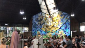 Casaram há 25 anos e vieram dizer que fizeram promessas e as estão cumprindo. Casamento que deu frutos, igualmente batizados na Comunidade São Miguel Arcano, a Amanda em 1997, a Alícia em 2003 e o André Luiz em 2009 (um domingo de páscoa).