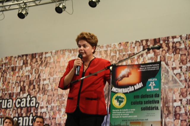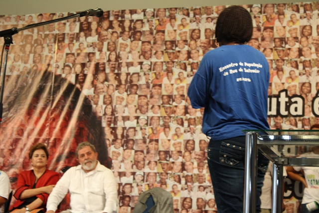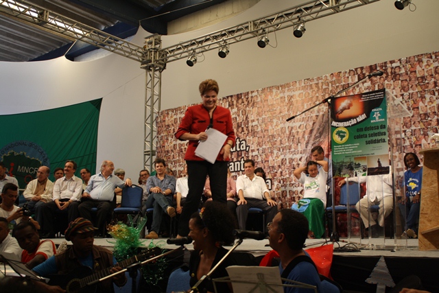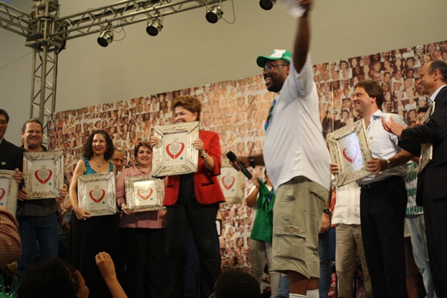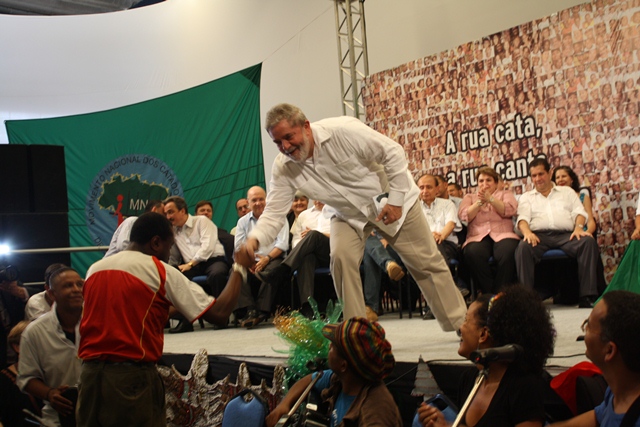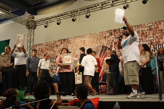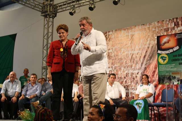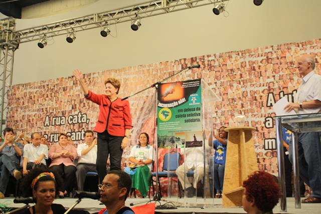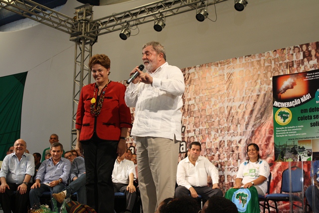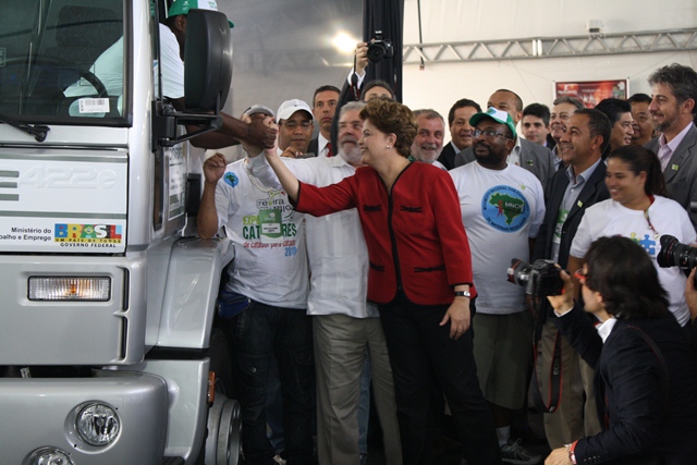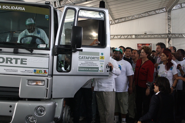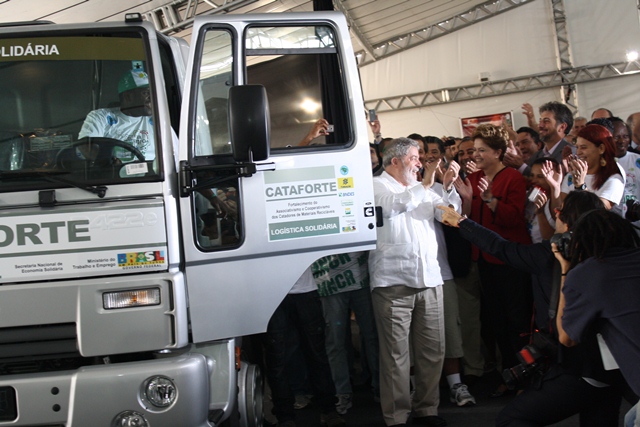 Lula e Dilma entregaram ainda um caminhão a cooperativas de catadores para a coleta seletiva solidária. Os dois acompanharam emocionados as falas das representantes do Movimentos Nacional da População em Situação de Rua, Maria Lúcia Santos Pereira, e do Movimento Nacional de Catadores, Matilde Ramos: